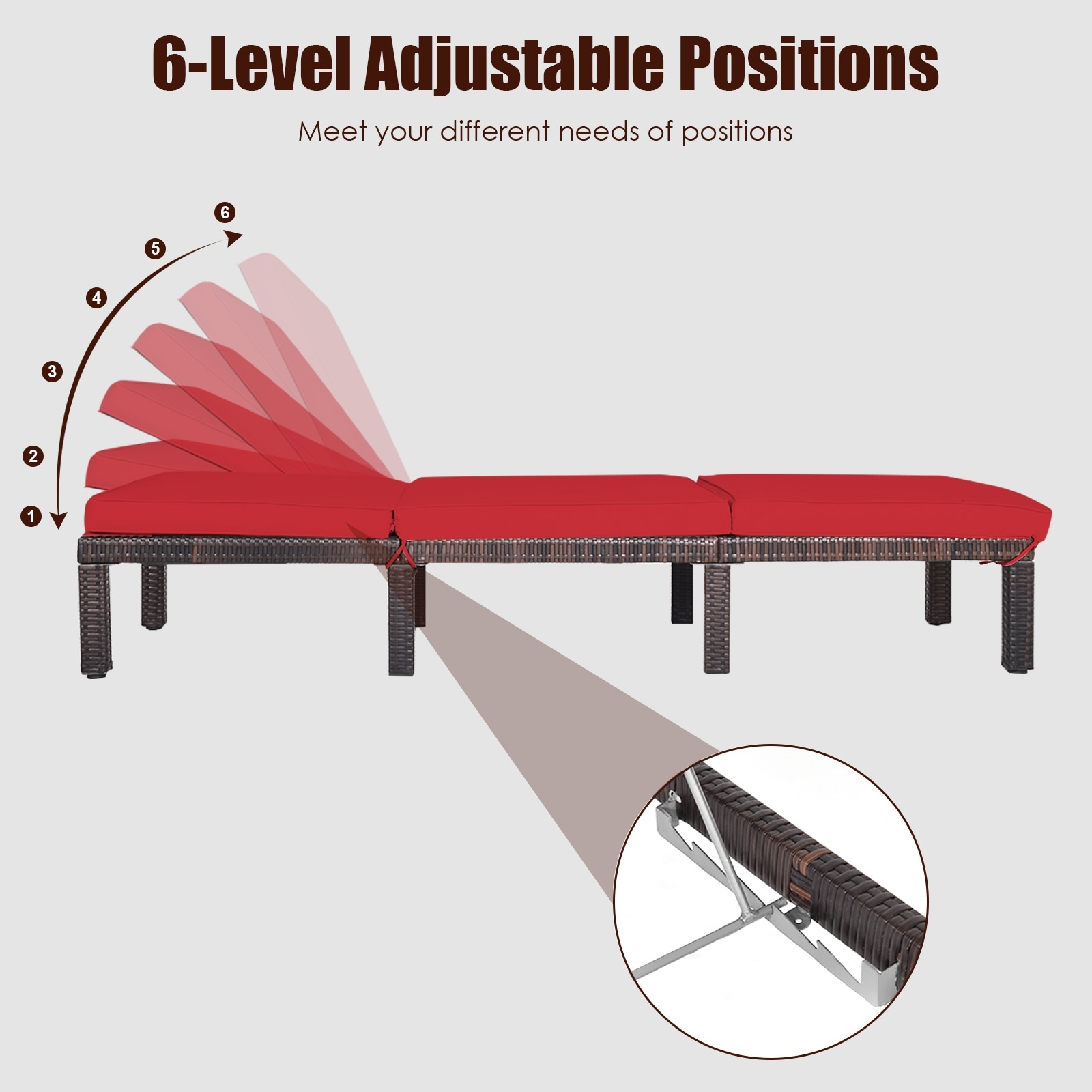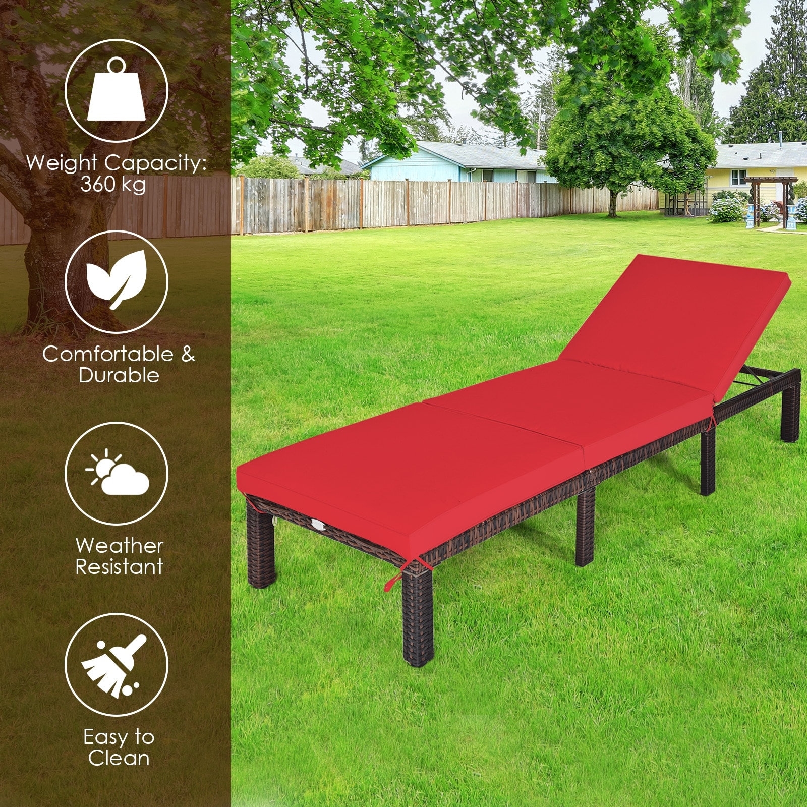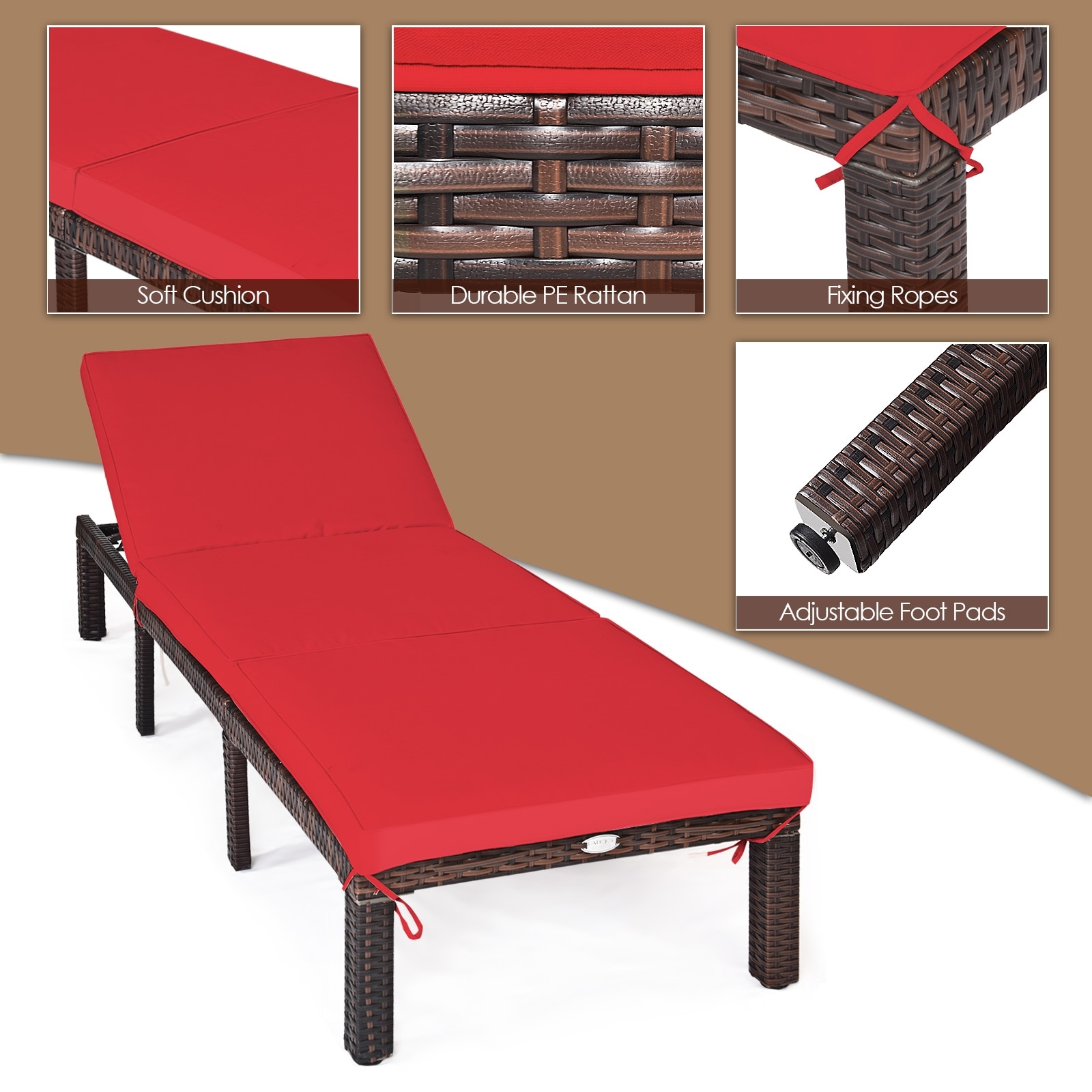 Clihome Outdoor Chairs Rattan Brown Metal Frame Stationary Chaise Lounge Chair(s) with Red Cushioned Seat