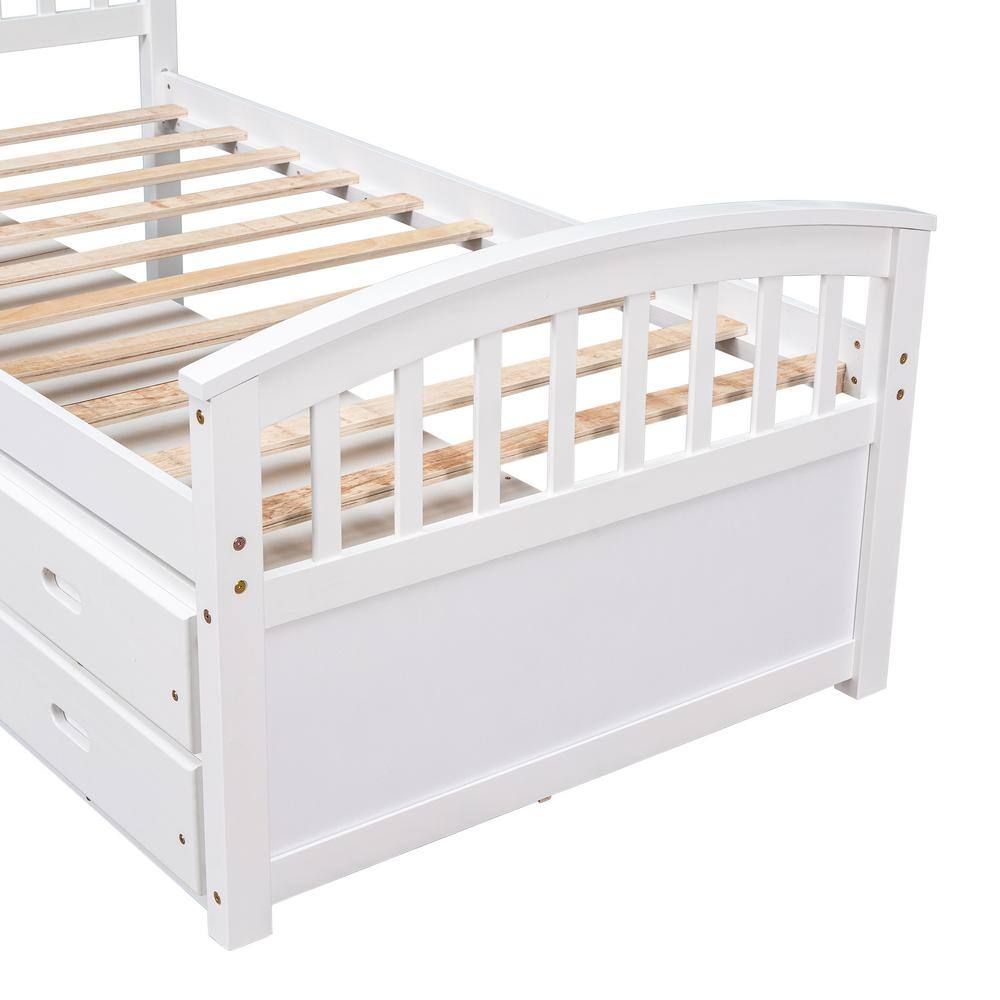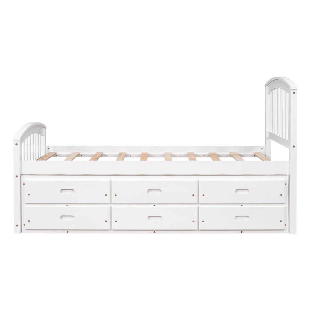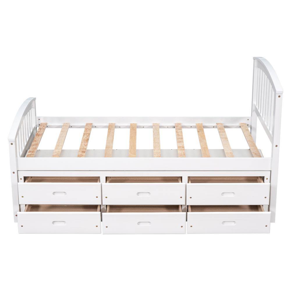 Harper & Bright Designs White Pine Wood Frame Twin Size Storage Platform Bed with 6 Drawers