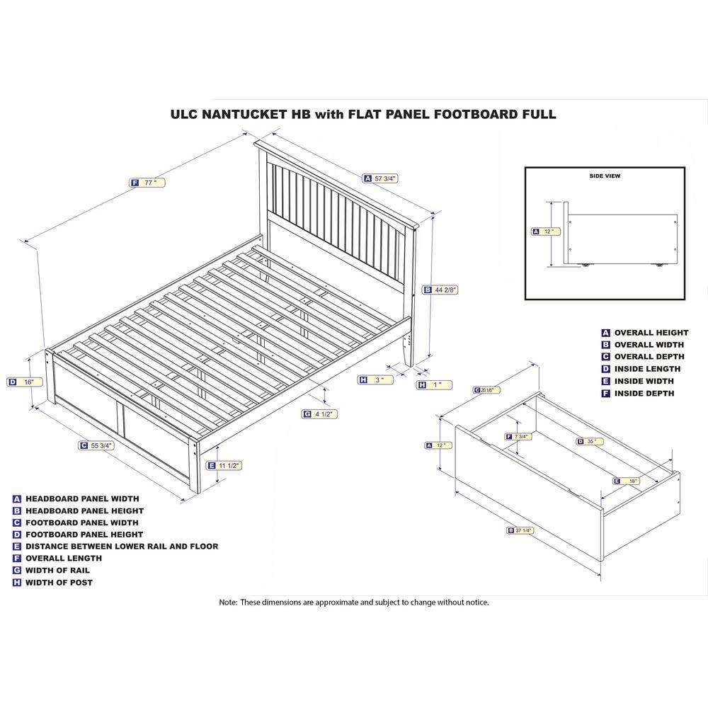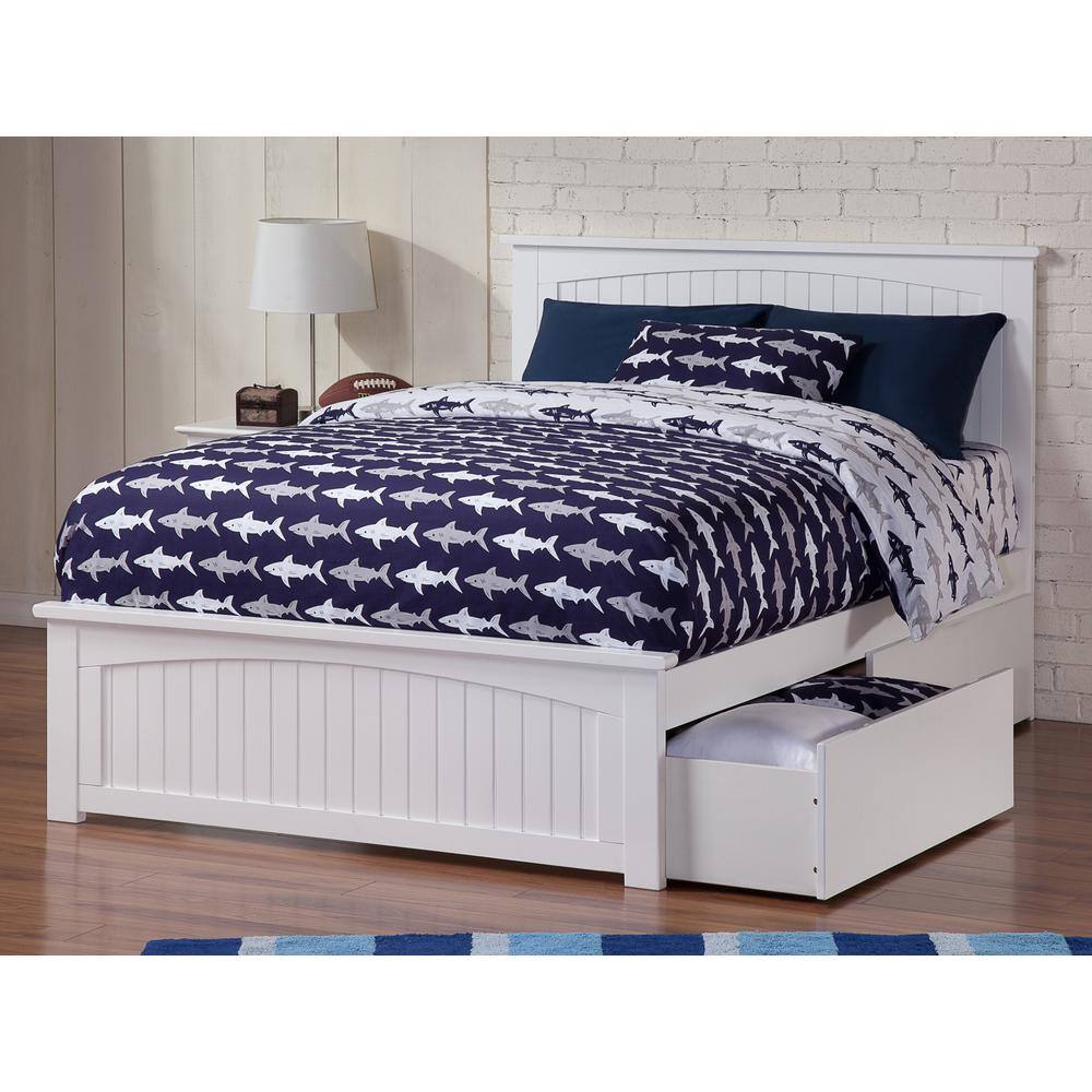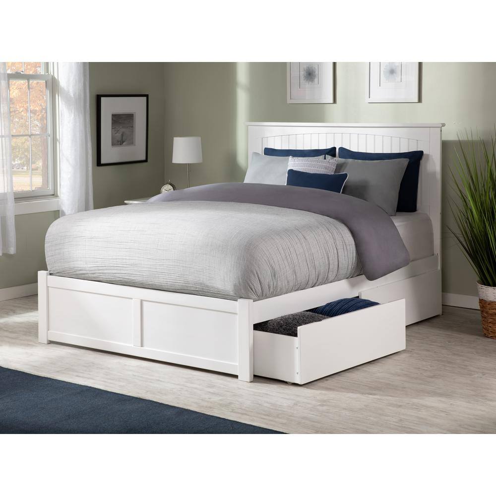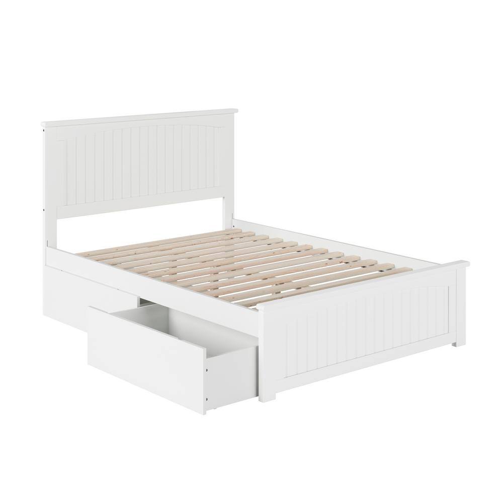 AFI Nantucket White Full Solid Wood Storage Platform Bed with Flat Panel Foot Board and 2 Bed Drawers