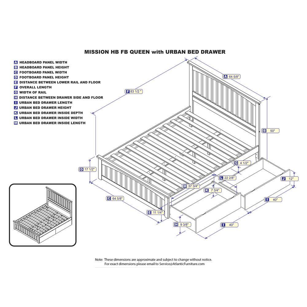 AFI Mission Walnut Queen Solid Wood Storage Platform Bed with Matching Foot Board with 2 Bed Drawers