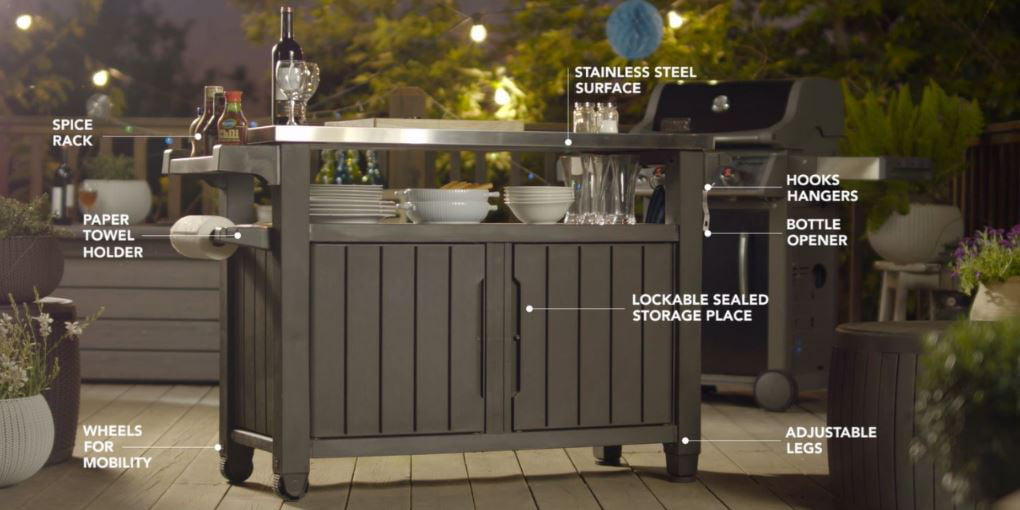 Keter Unity XL Portable Outdoor Table and Storage Cabinet with Accessory Hooks. Espresso Brown