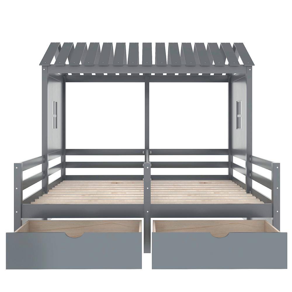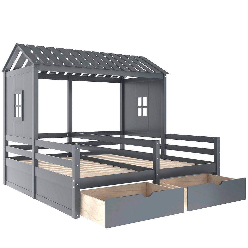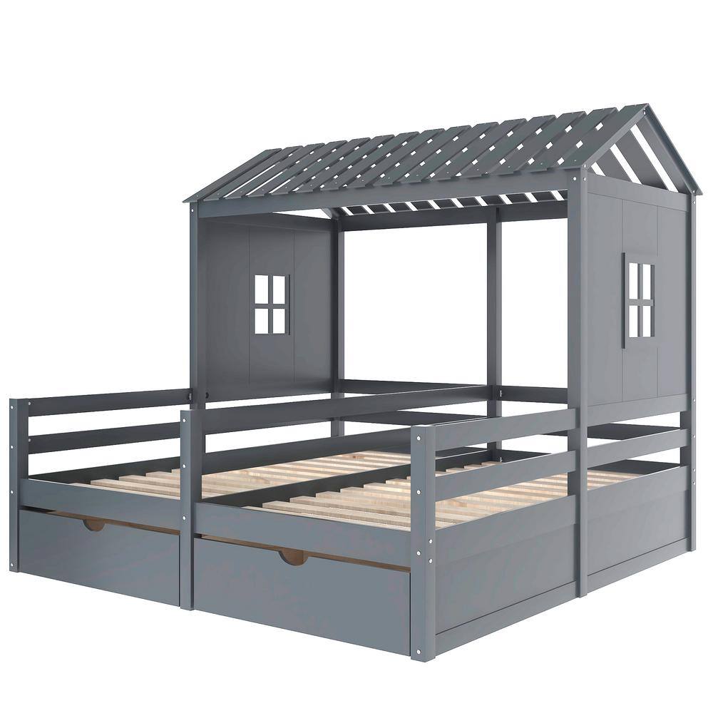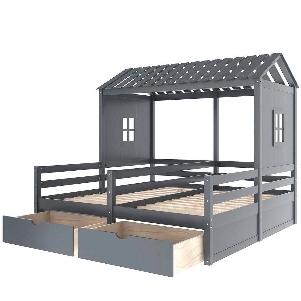 Harper & Bright Designs 77.3 in. W Gray Twin Size Wood Frame Combination of 2 Side by Side Platform Bed