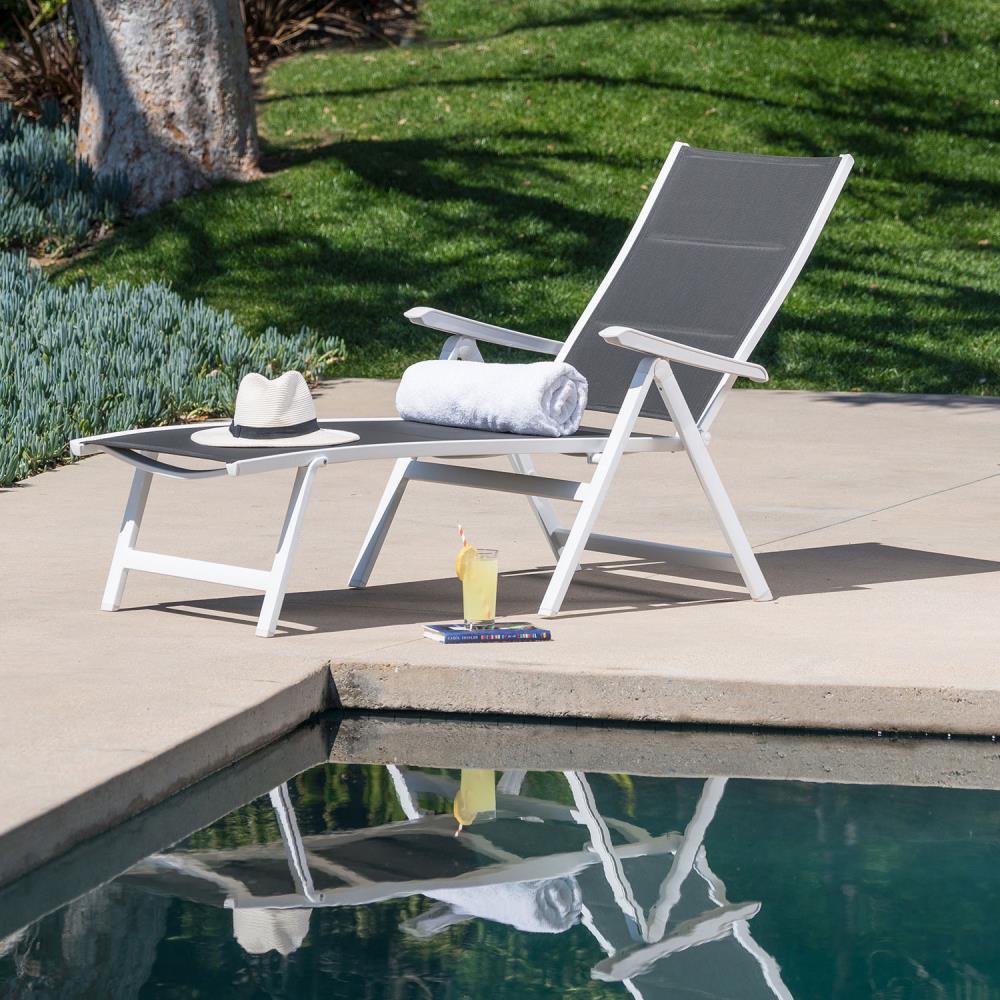 Hanover Regis White Metal Frame Stationary Chaise Lounge Chair(s) with Gray Sling Seat
