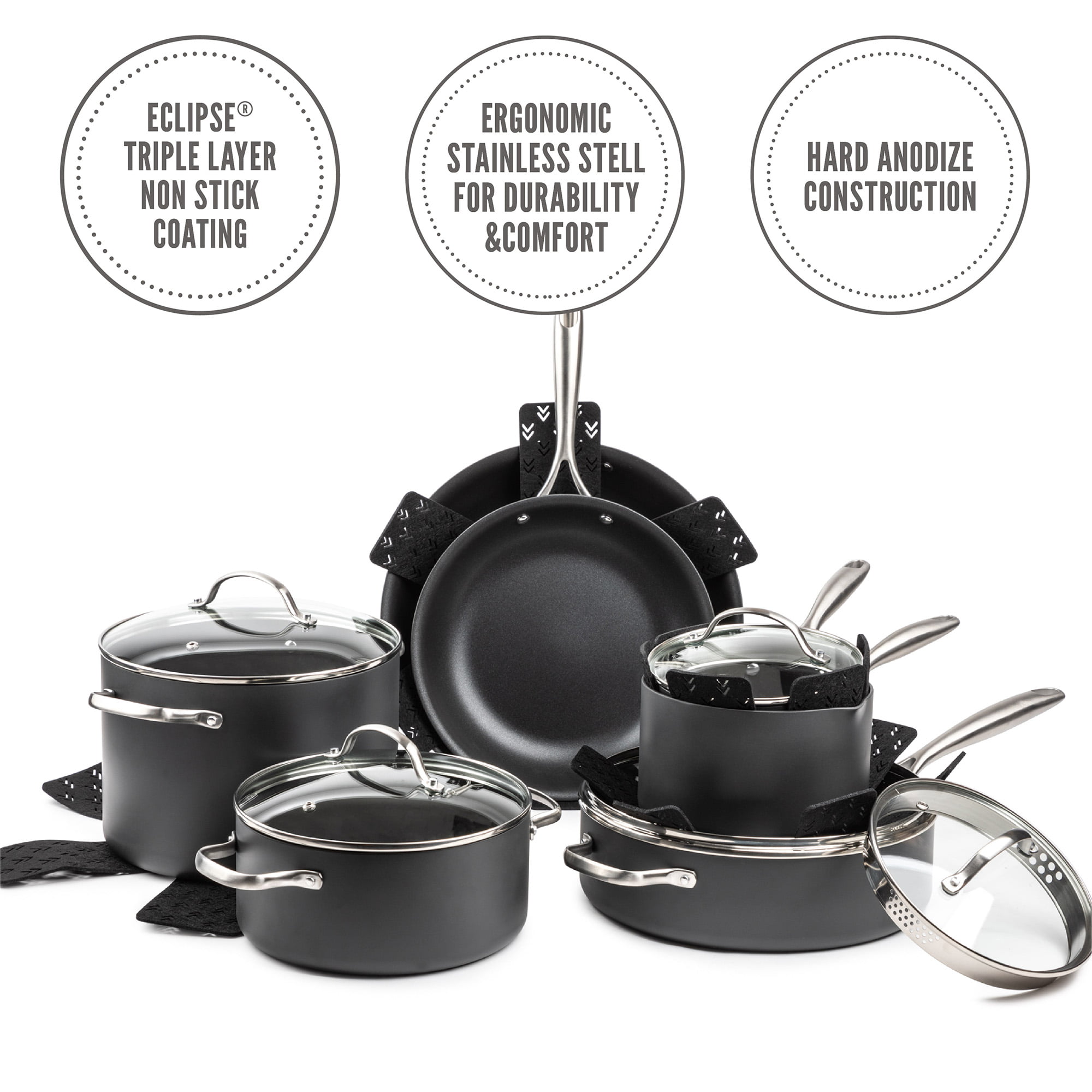 Thyme & Table Non-Stick 15-Piece Cookware Set Hard Anodized Aluminum