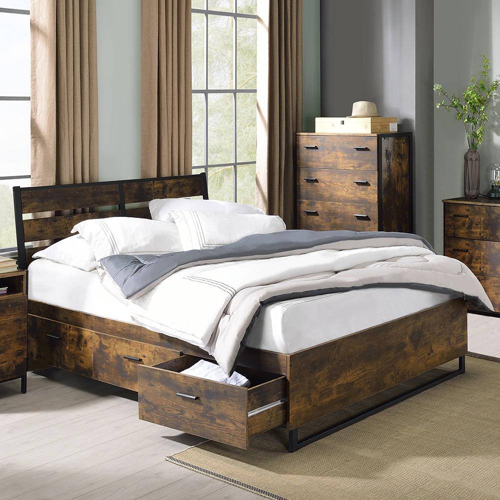 Acme Furniture Juvanth Rustic Oak and Black Queen Size Panel Bed
