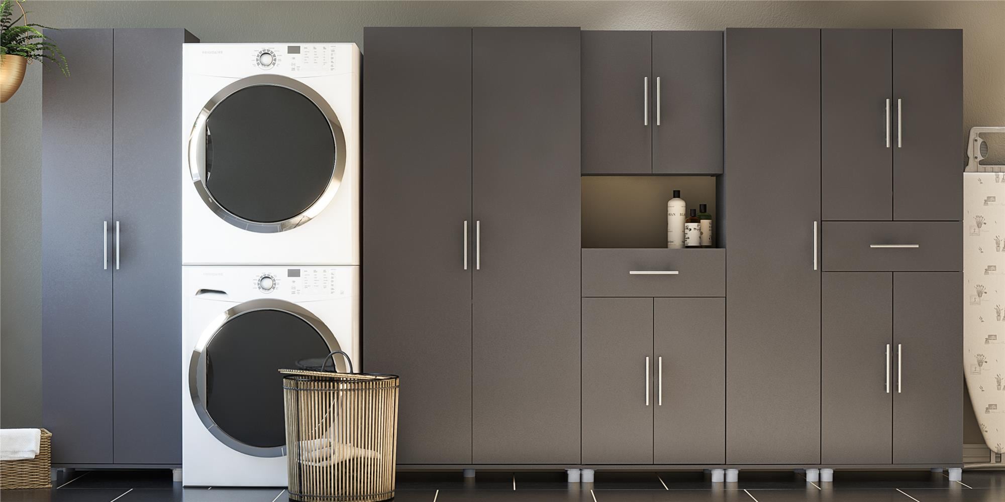 Ameriwood Home Camberly 35.68-in W x 74.31-in H Wood Composite Graphite Grey/Graphite Grey Freestanding Utility Storage Cabinet