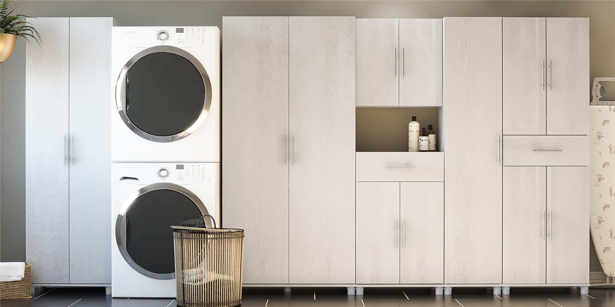 Ameriwood Home Camberly 35.68-in W x 74.31-in H Wood Composite Ivory Oak/Magnolia Oak Freestanding Utility Storage Cabinet
