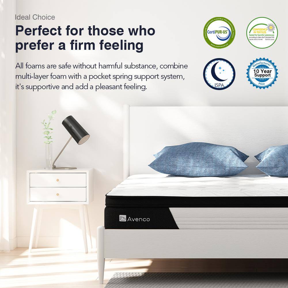 Avenco 10 in. Medium Firm Hybrid Pillow Top Mattresses. Strong Edge Support. King Mattress