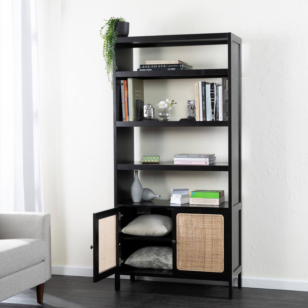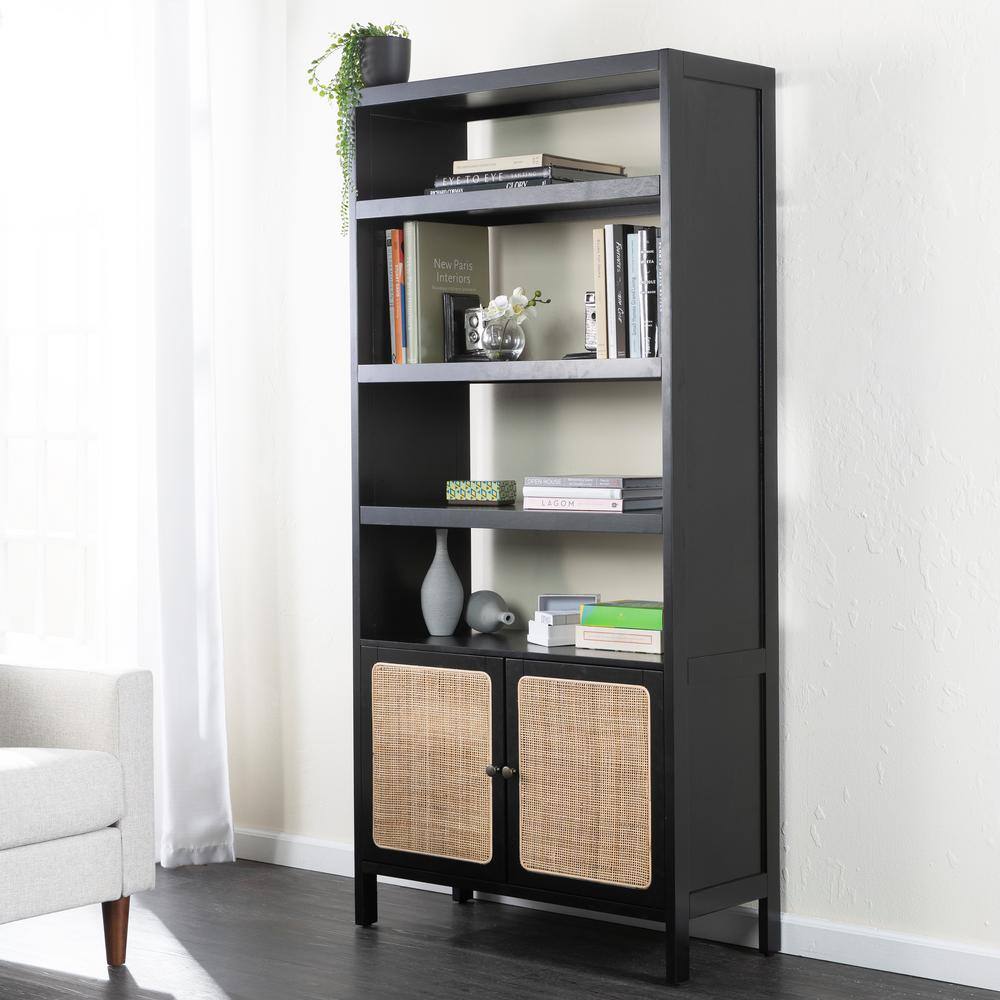 SEI FURNITURE Carondale 74 in. Wide Black 4-shelves Standard Bookcase