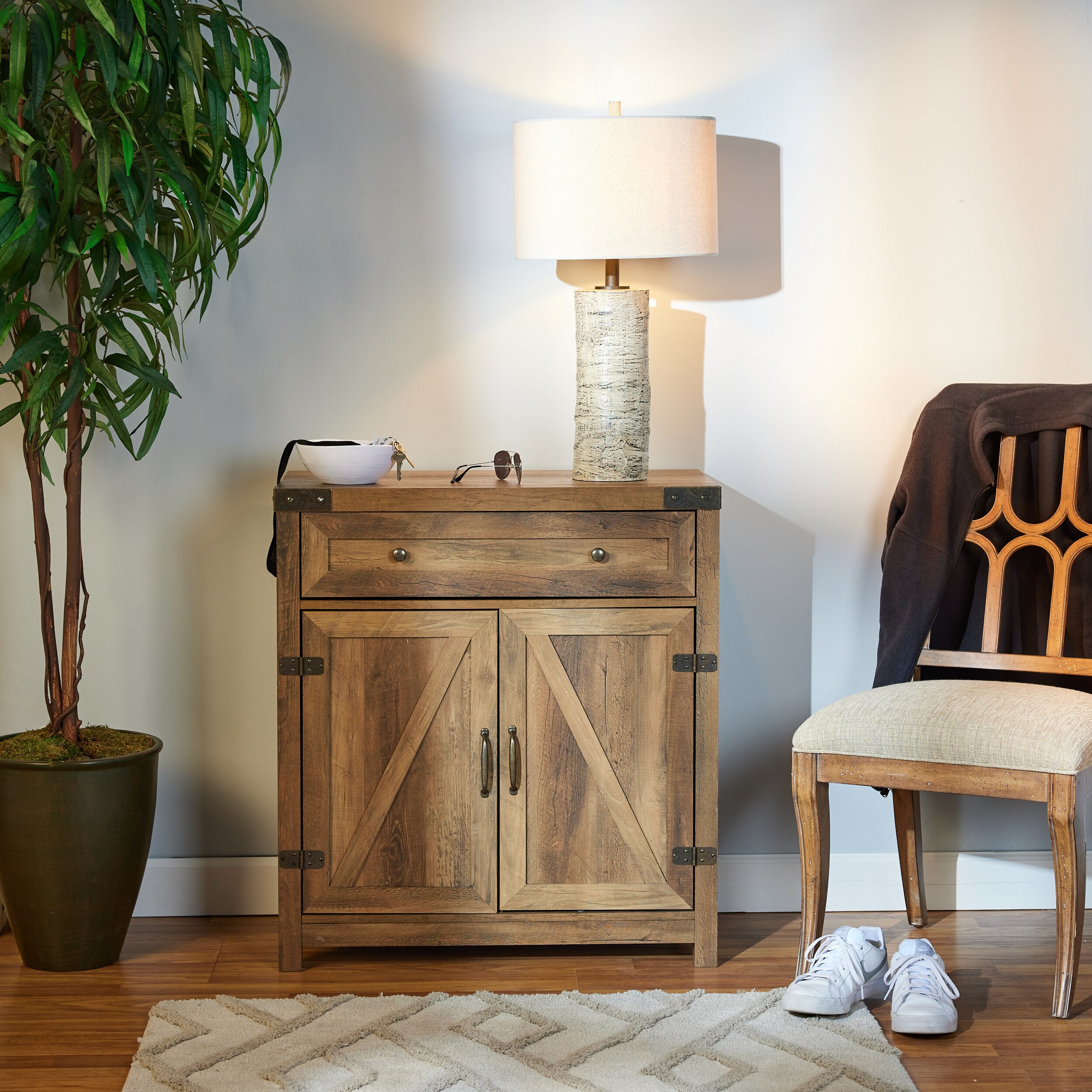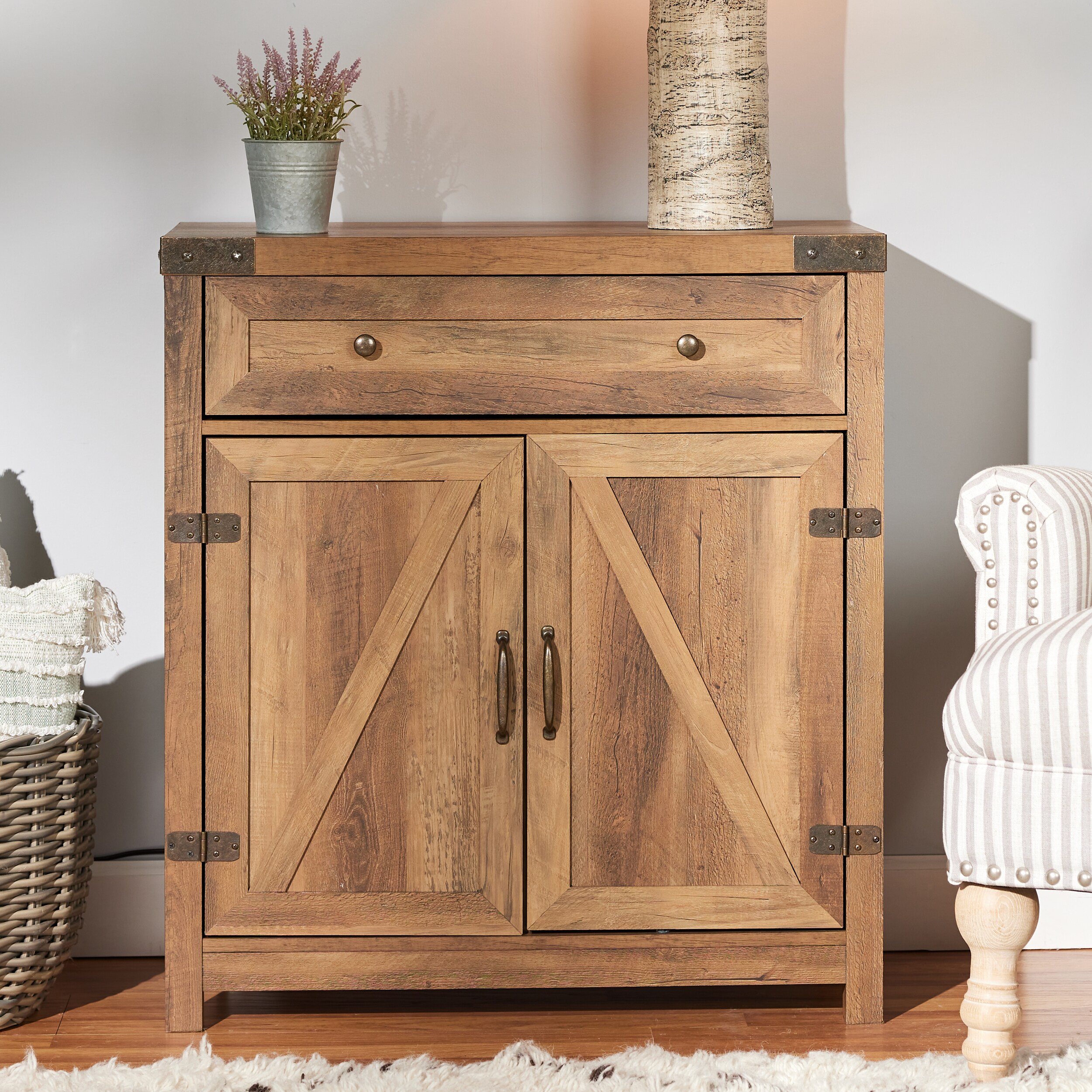 Walker Edison 30-in W x 33-in H Wood Composite Reclaimed Barnwood Freestanding Utility Storage Cabinet