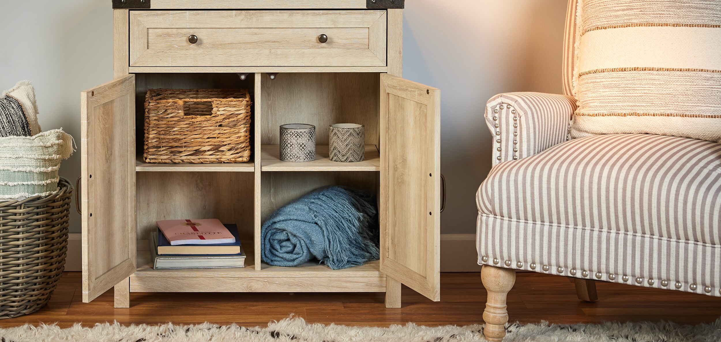 Walker Edison 30-in W x 33-in H Wood Composite White Oak Freestanding Utility Storage Cabinet