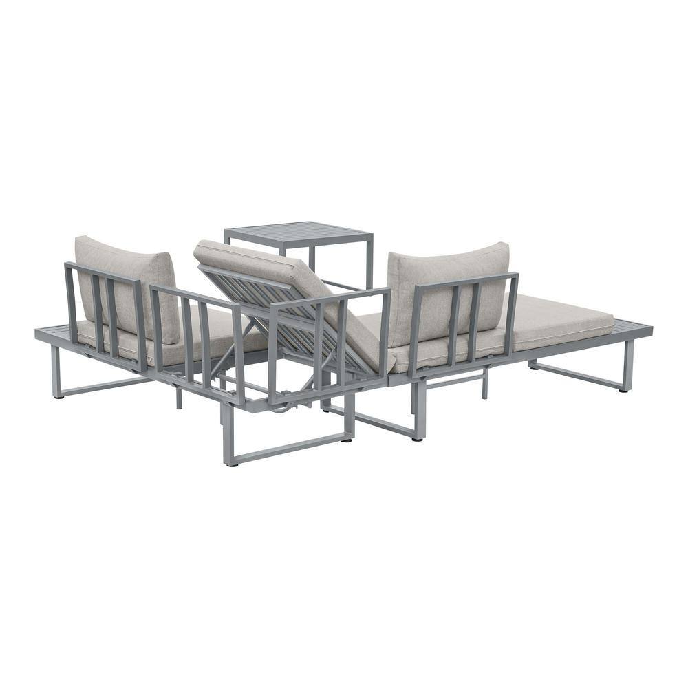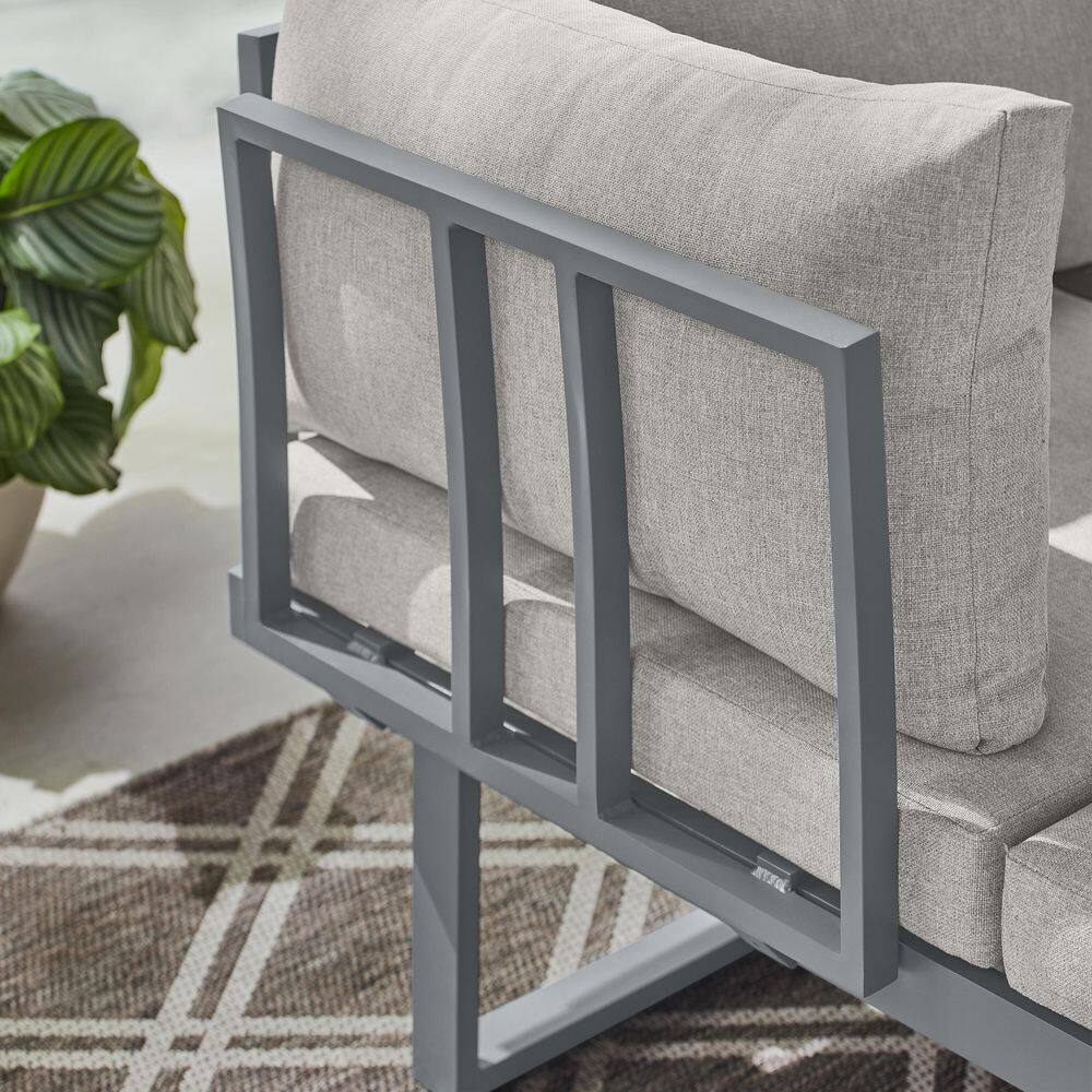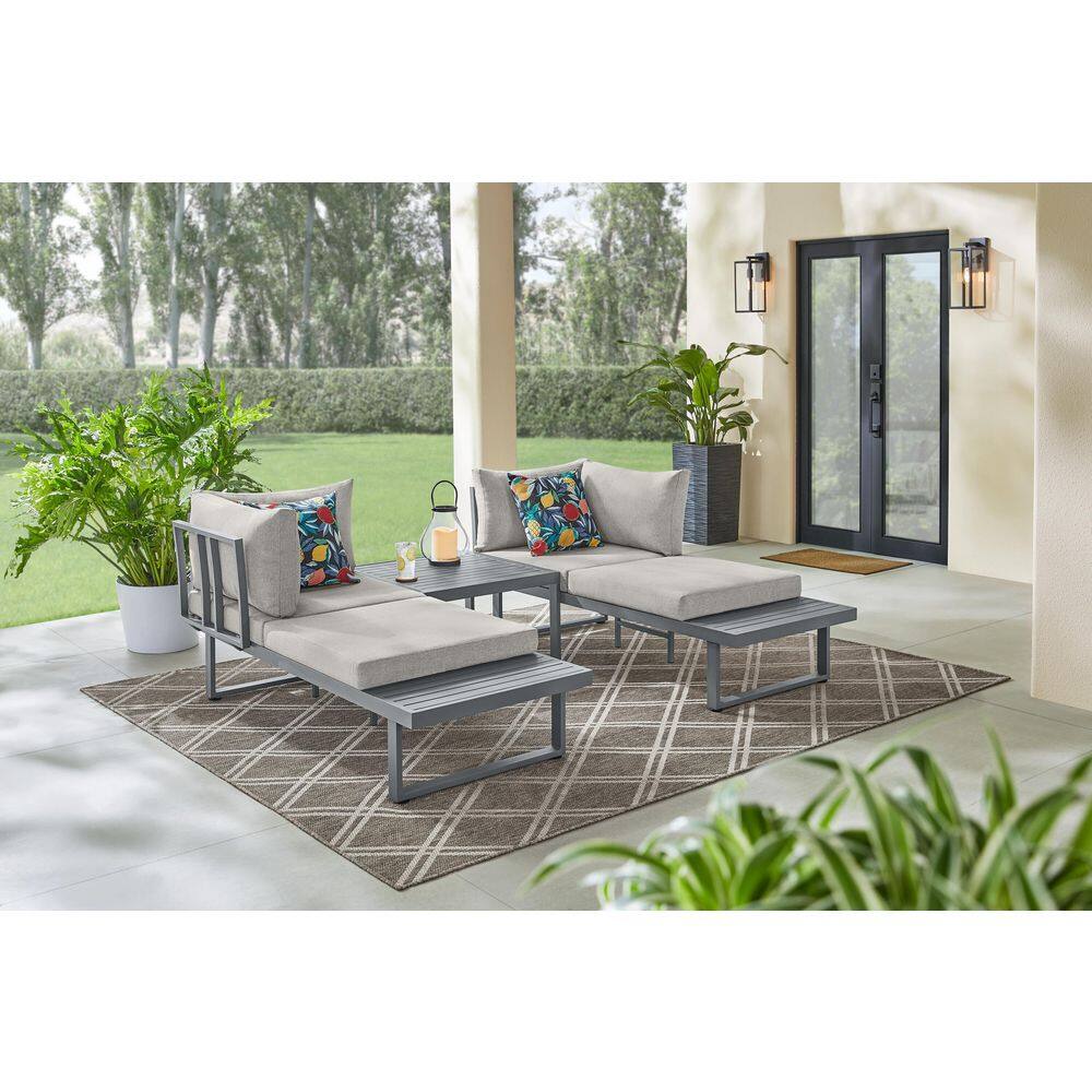 Hampton Bay Creekfield 3-Piece Aluminum Outdoor Modular Sectional with Stone Gray Cushions