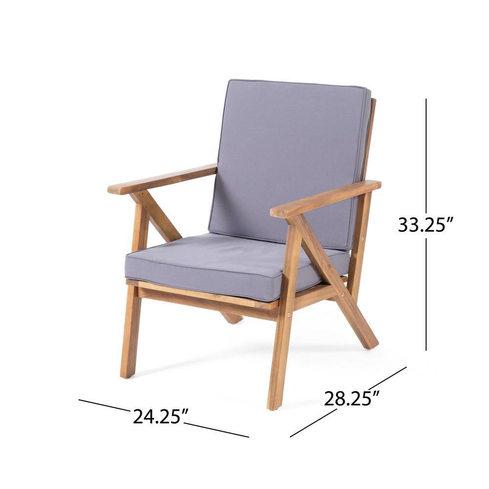 Noble House Panama Teak Brown 8-Piece Wood Patio Conversation Set with Dark Grey Cushions