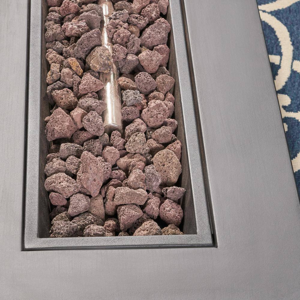 Noble House Rensing 5-Piece Plastic Patio Fire Pit Conversation Set with Light Grey Cushions