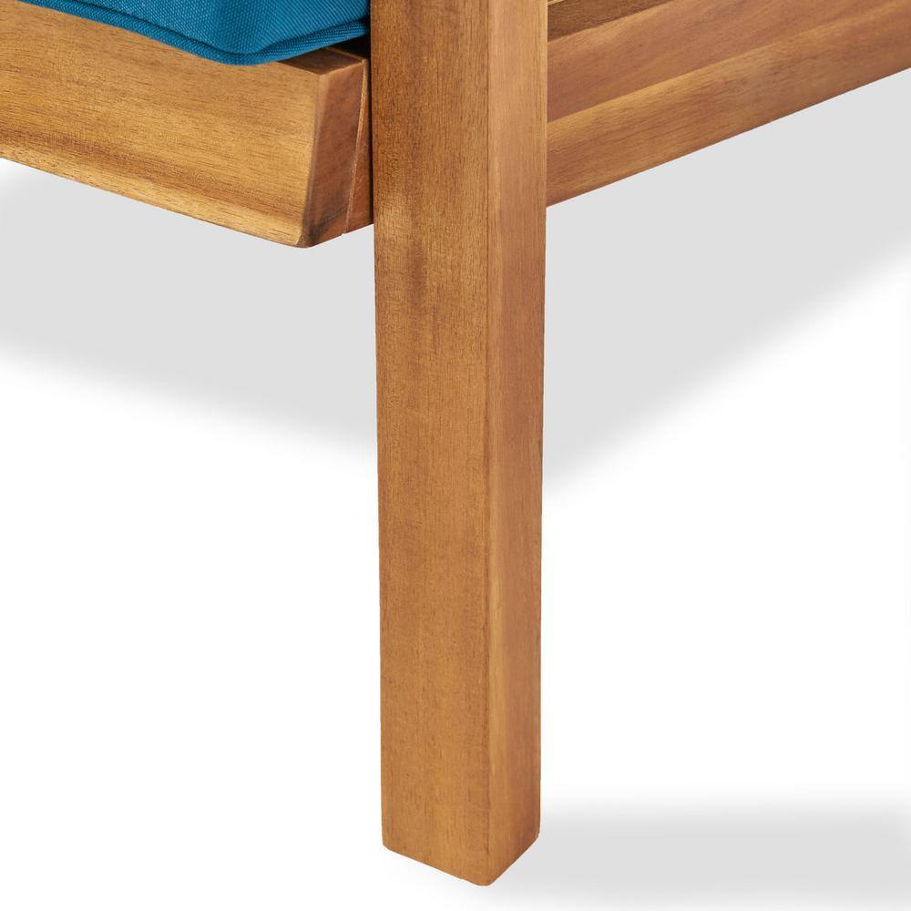 Noble House Leah Brown Patina 7-Piece Wood Patio Conversation Seating Set with Dark Teal Cushions