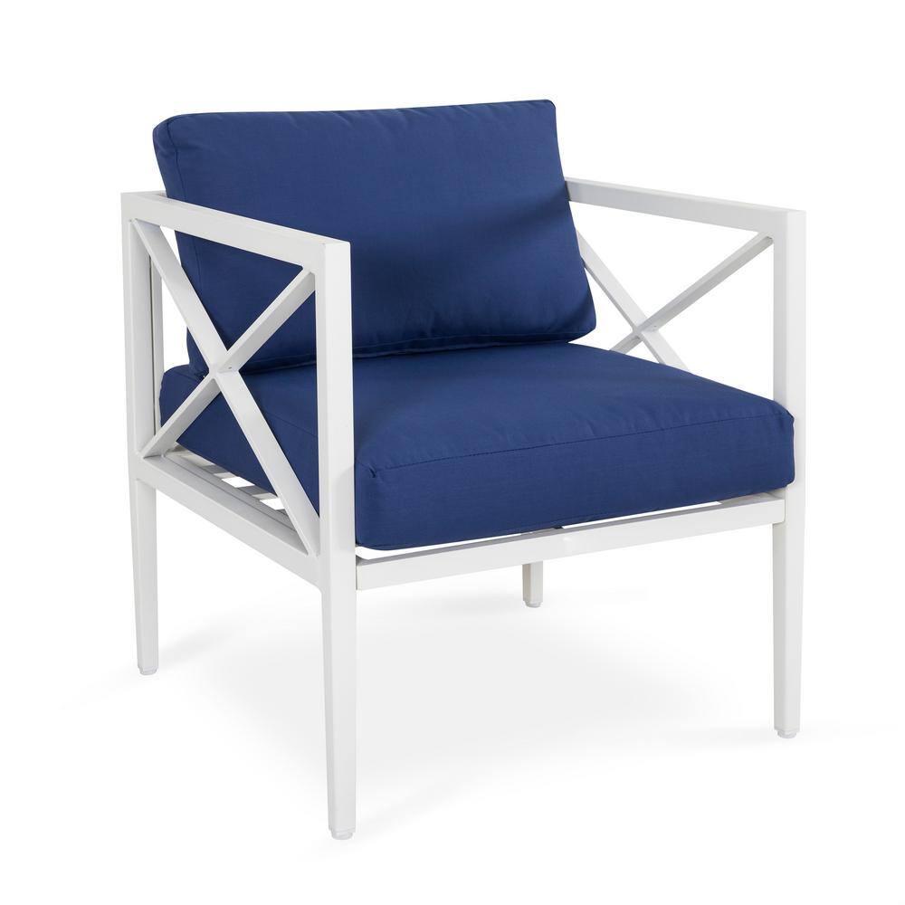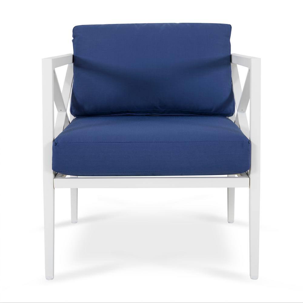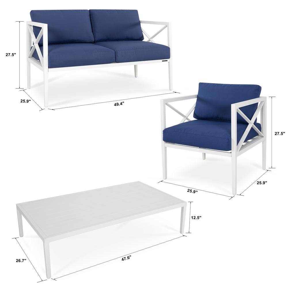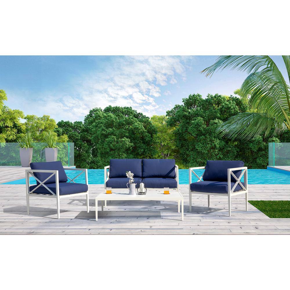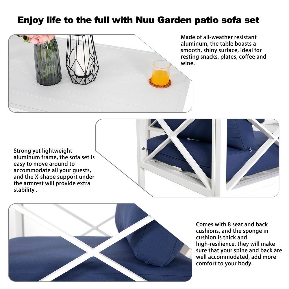Nuu Garden White 4-Piece Aluminum Outdoor Patio Conversation Sofa Seating Set with Dark Blue Cushions