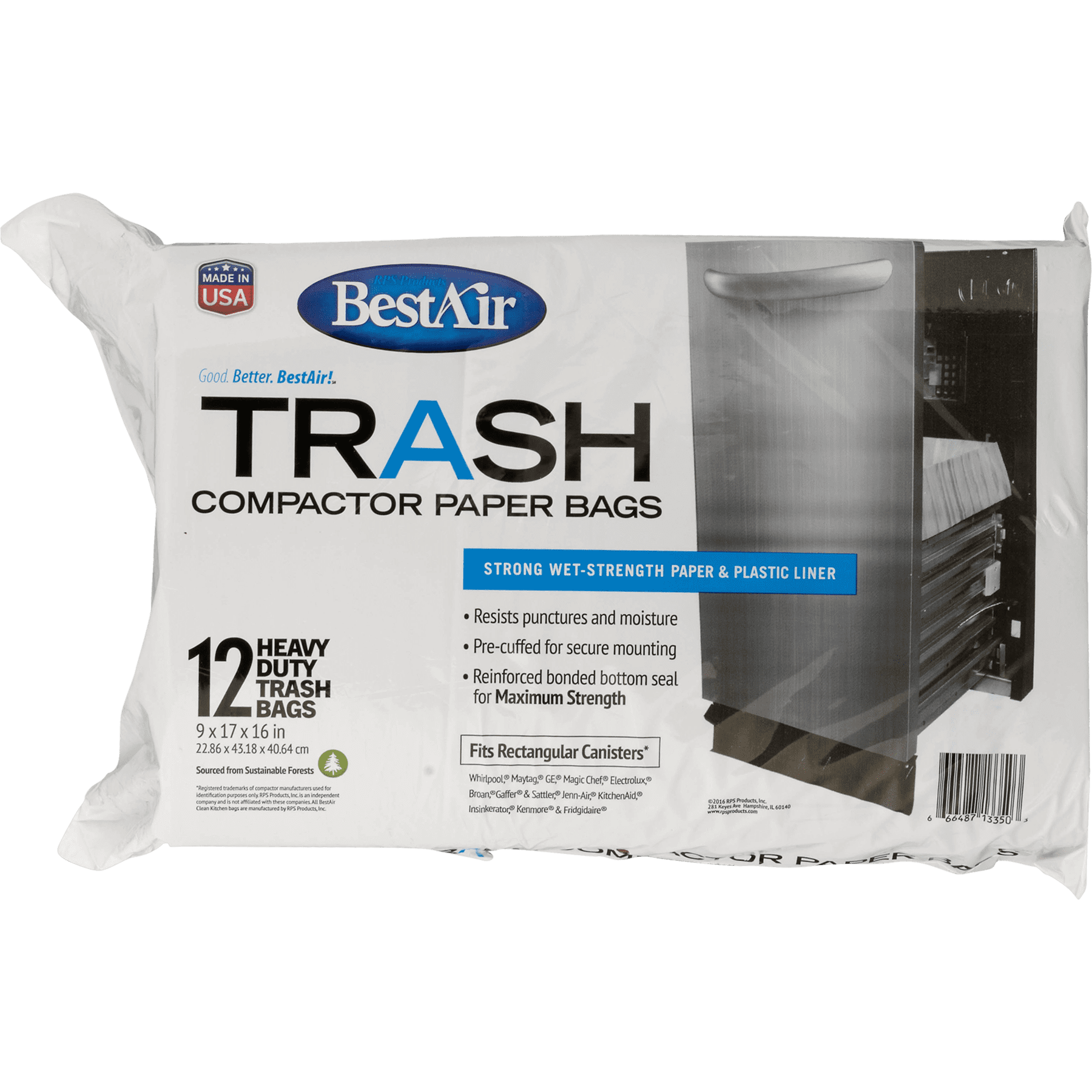 BestAir Heavy Duty Paper Trash Compactor Bags. Pre-Cuffed. 12 Bags
