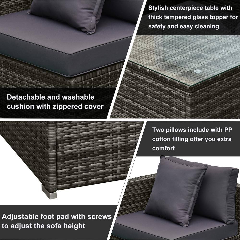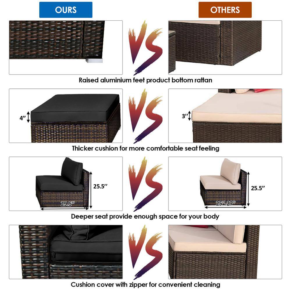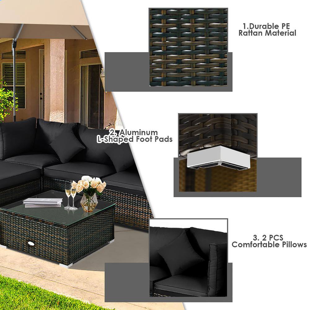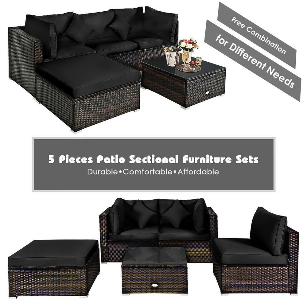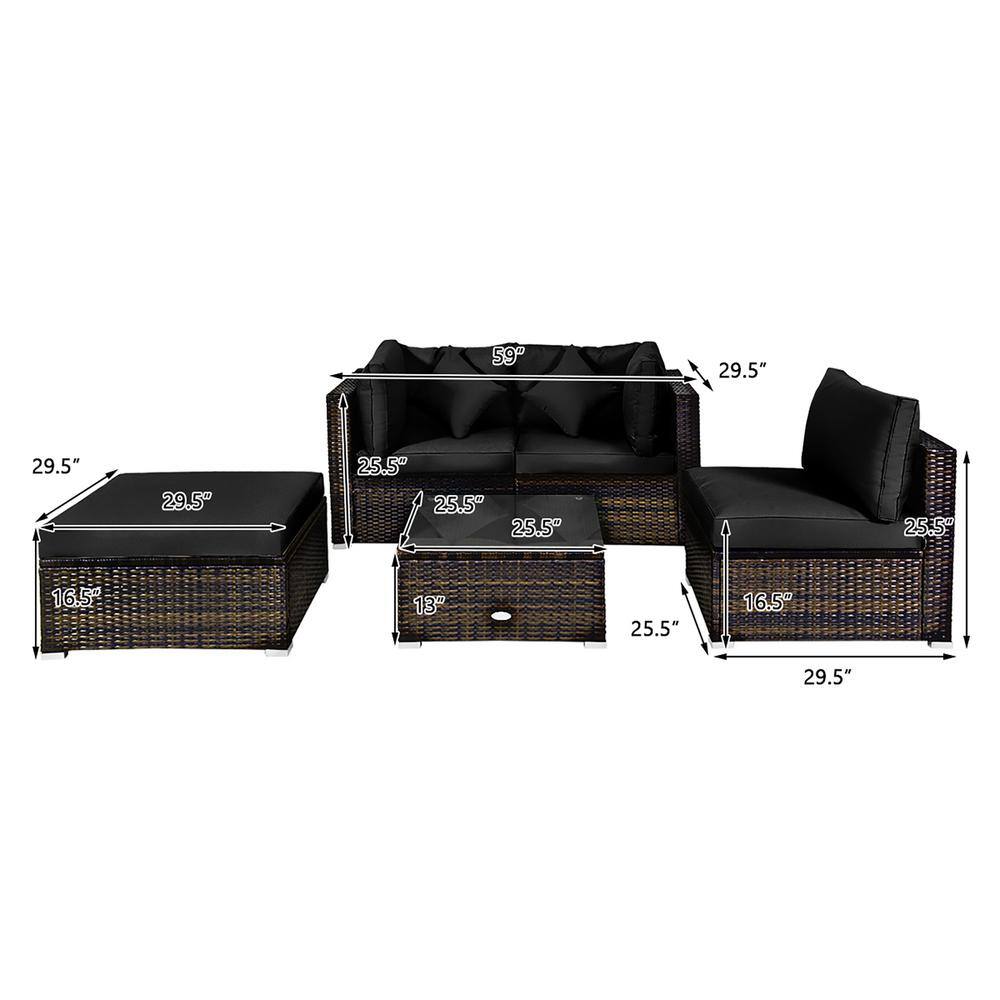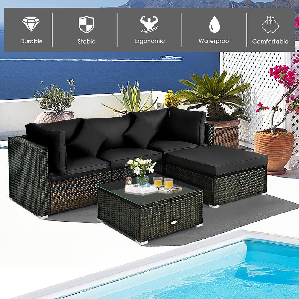 Costway 5-Piece Wicker Patio Conversation Set with Black Cushions