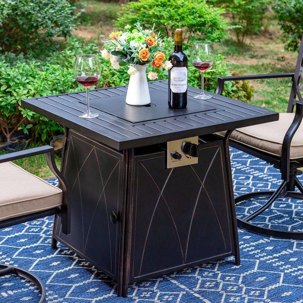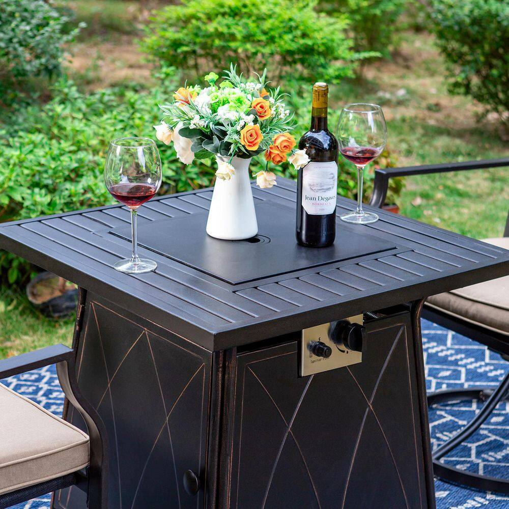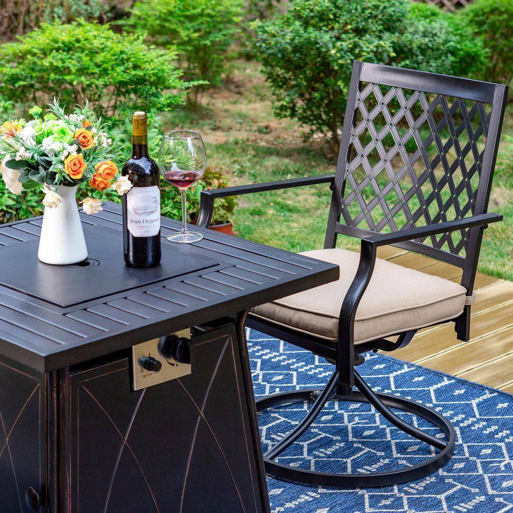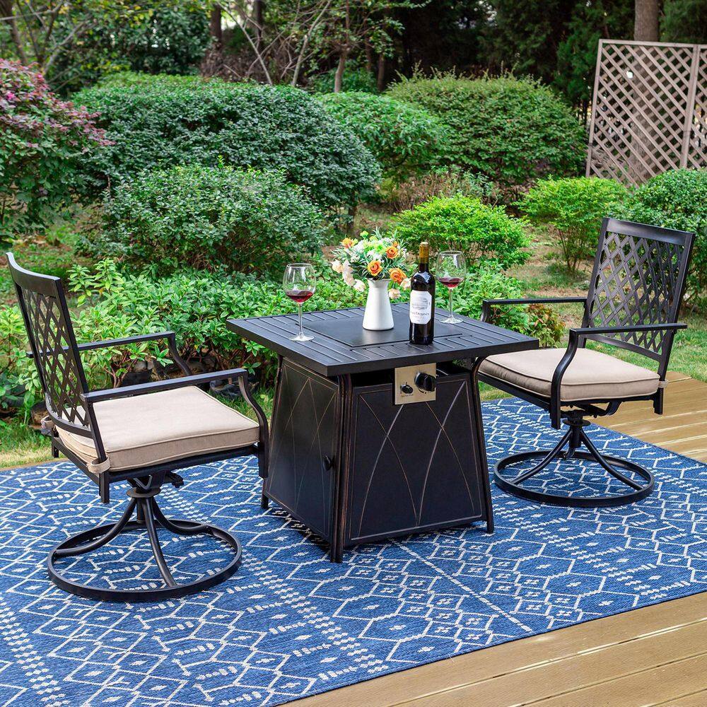 PHI VILLA 3-Piece Metal Patio Fire Pit Set. 2 Metal Back Swivel Rockers with Beige Cushion