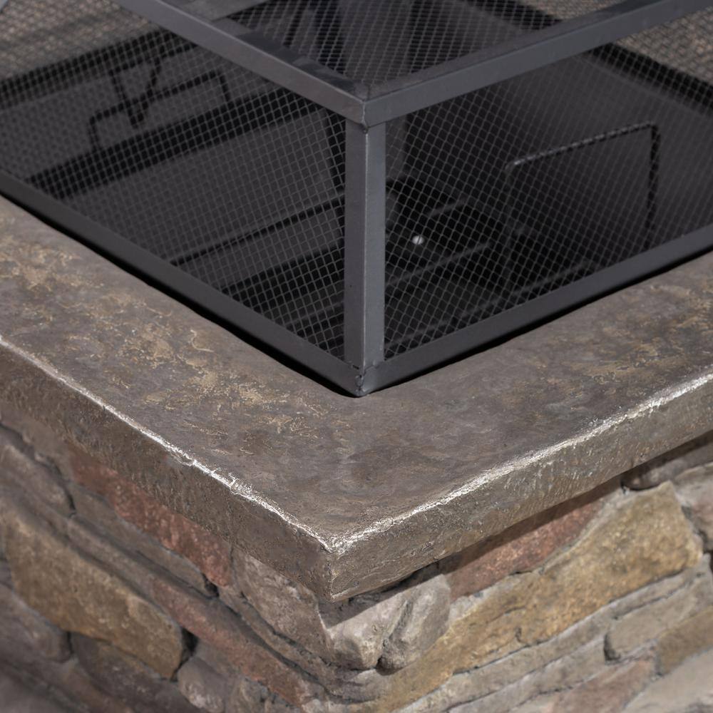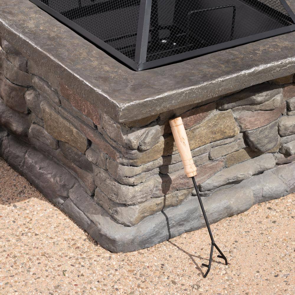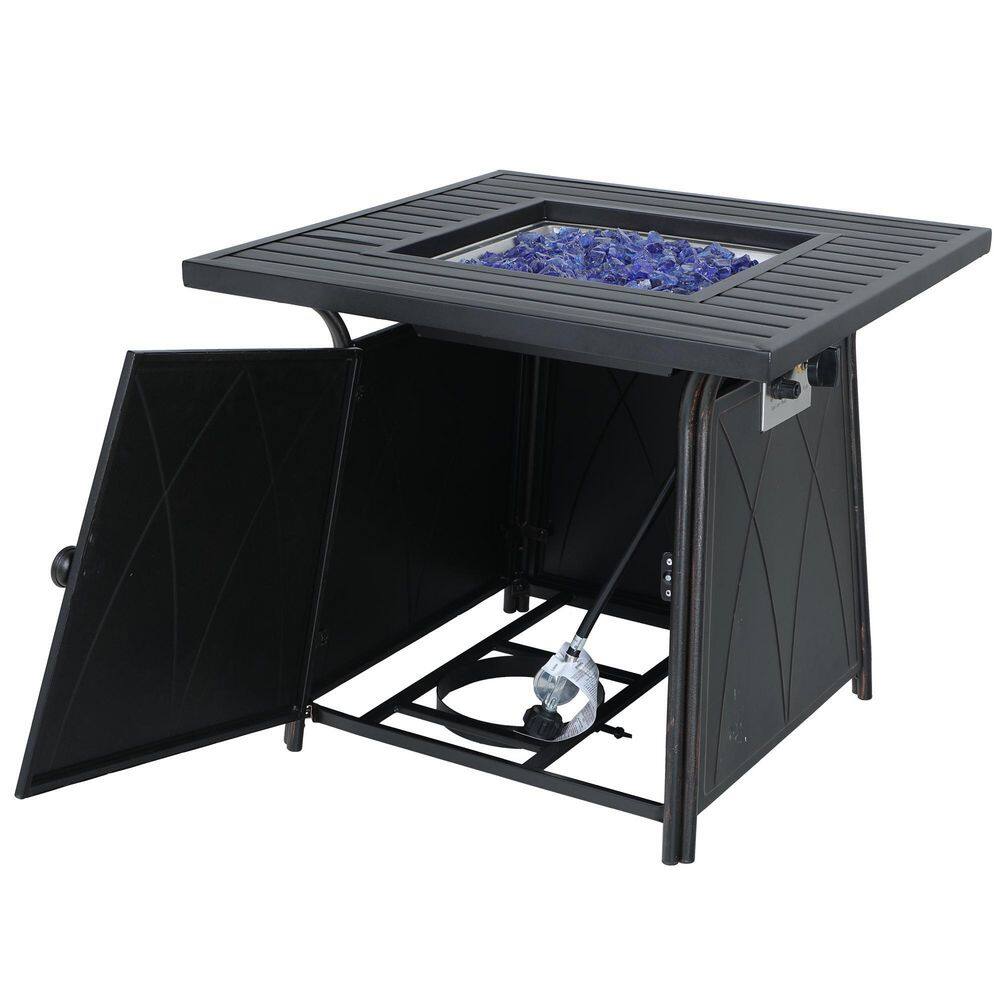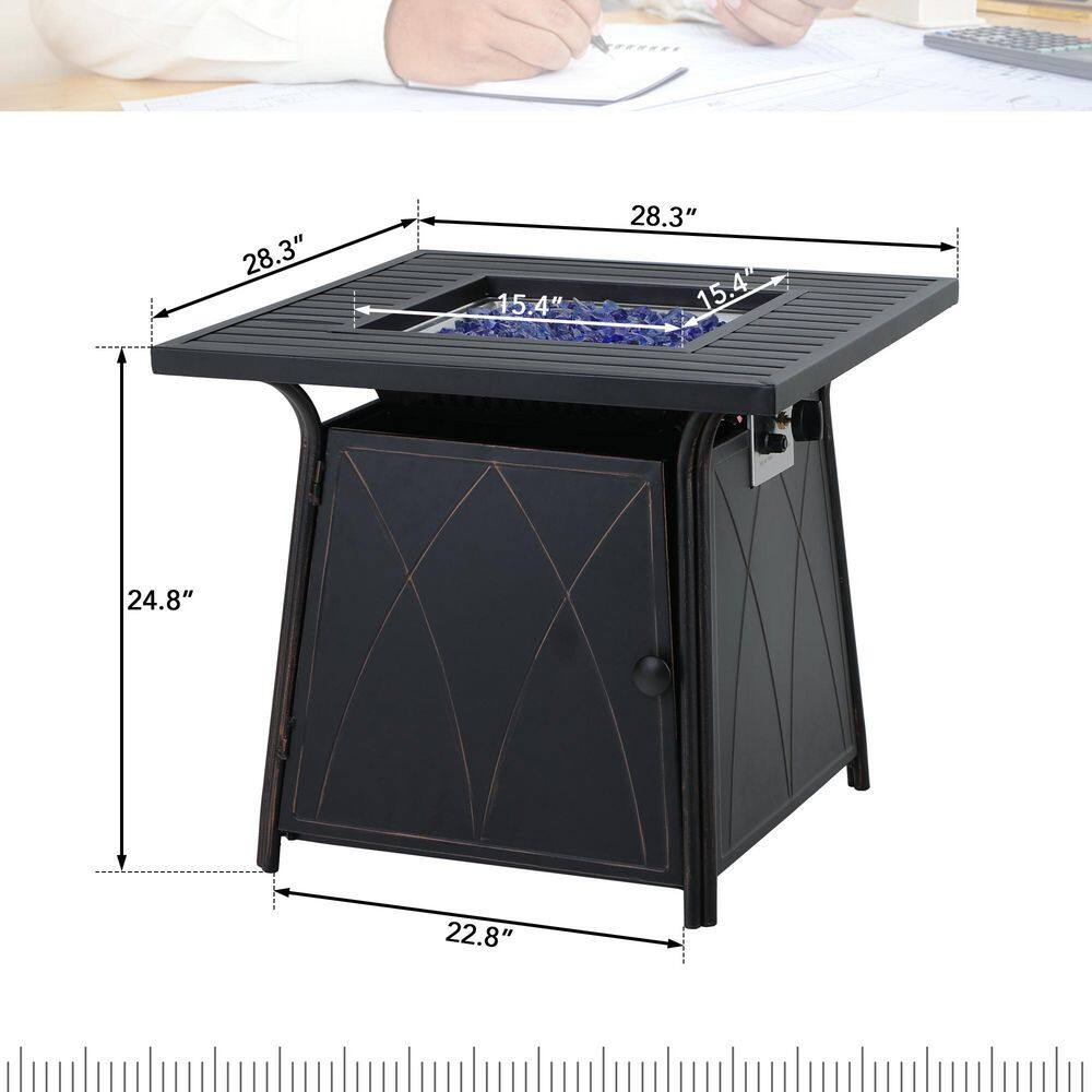 PHI VILLA 3-Piece Metal Patio Fire Pit Set. 2 Metal Back Swivel Rockers with Beige Cushion