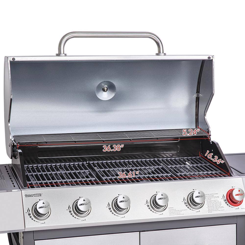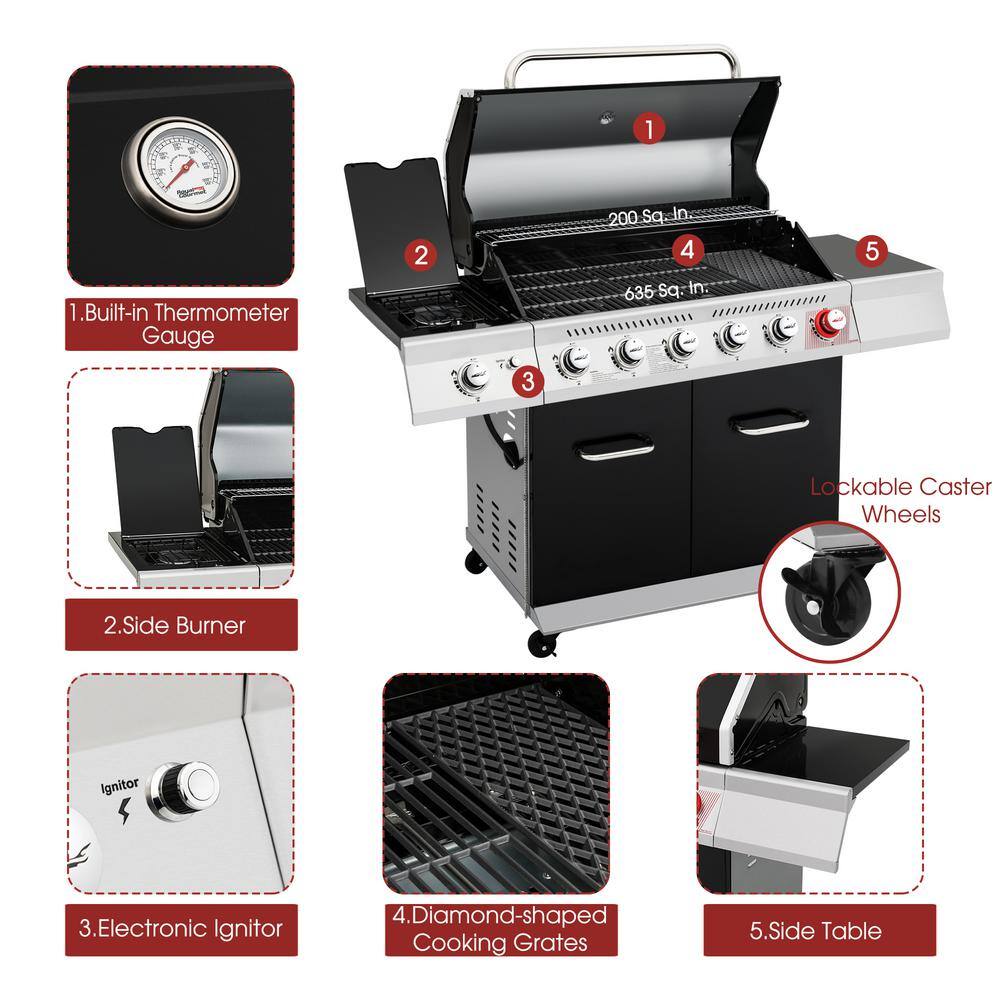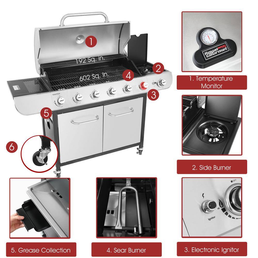 Royal Gourmet GA6402H 6-Burner BBQ Liquid Propane Gas Grill with Sear Burner and Side Burner. 74.000 BTU. Cabinet Style Grill in Black