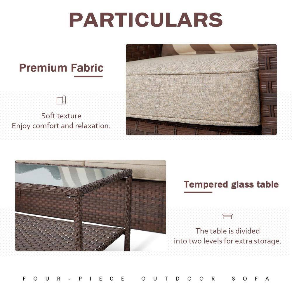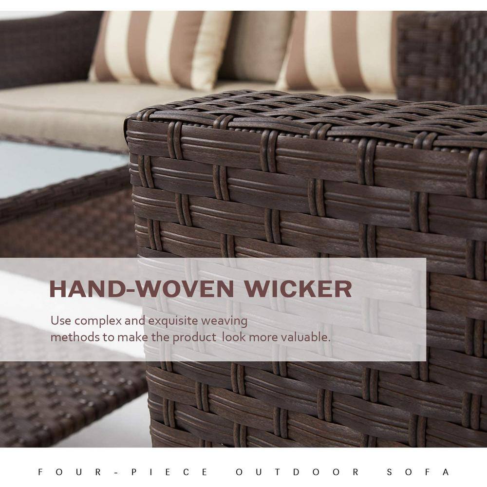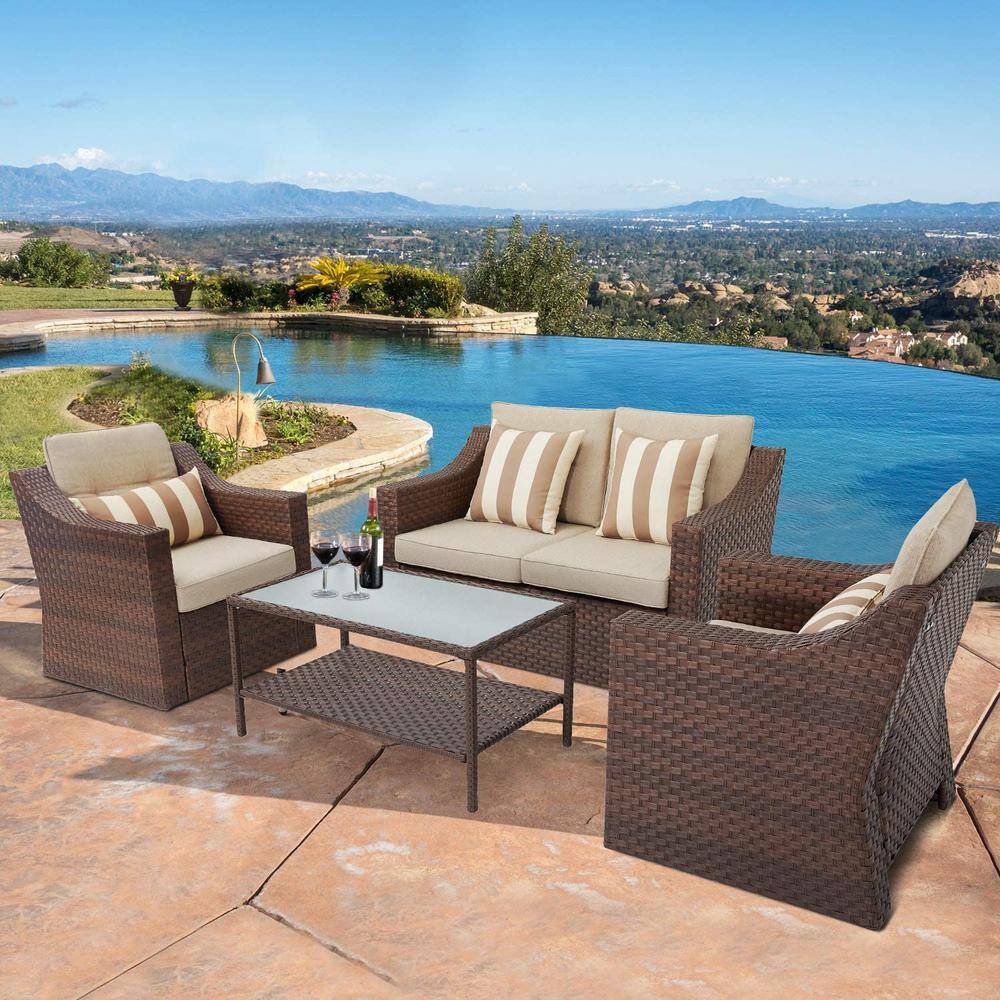 Suncrown Brown 4-Piece Wicker Patio Conversation Set with Light Brown Cushions