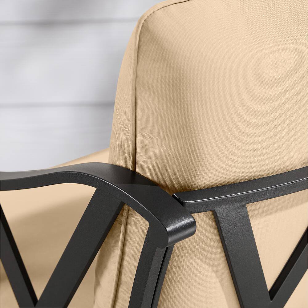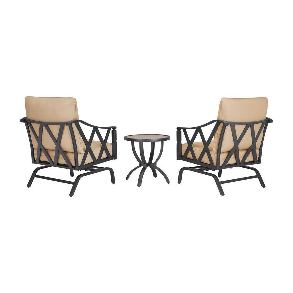 Hampton Bay Harmony Hill 3-Piece Black Steel Outdoor Patio Motion Conversation Set with CushionGuard Malachite Green Cushions
