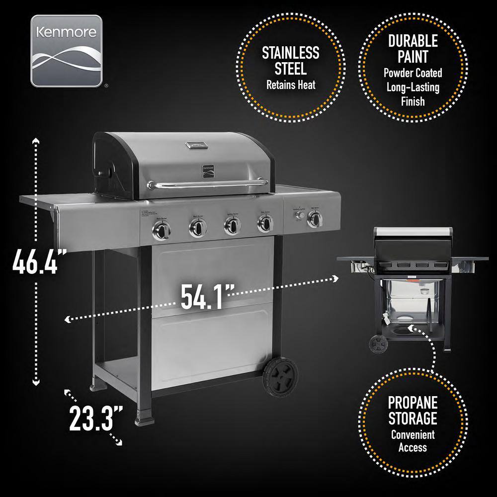 KENMORE PG-40406SOL-SE Kenmore 4 Burner Open Cart Propane Gas BBQ Grill with Side Burner. Stainless Steel