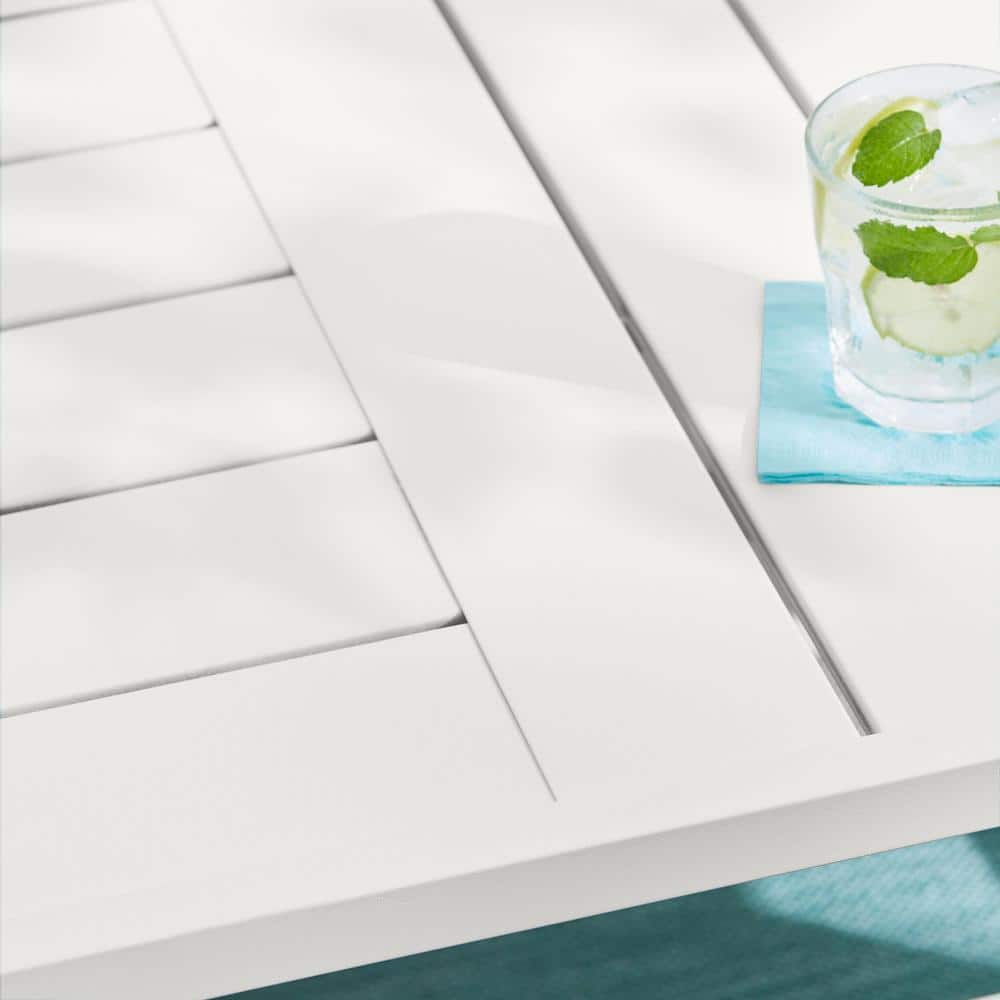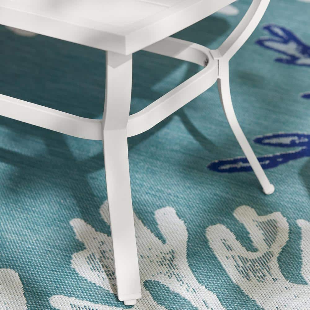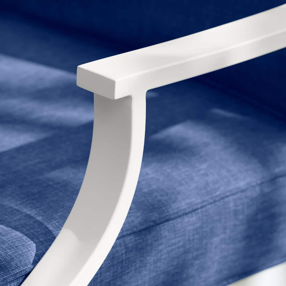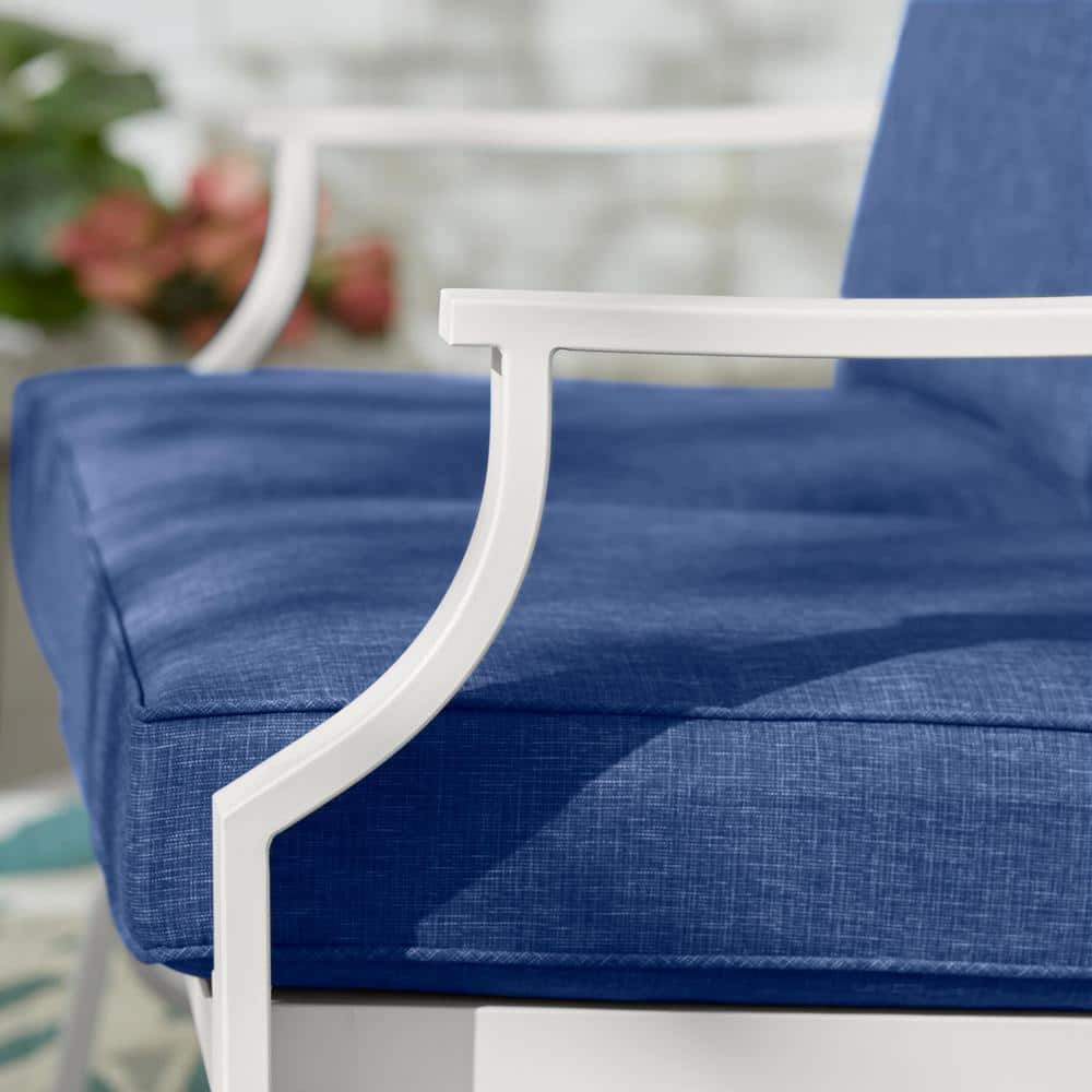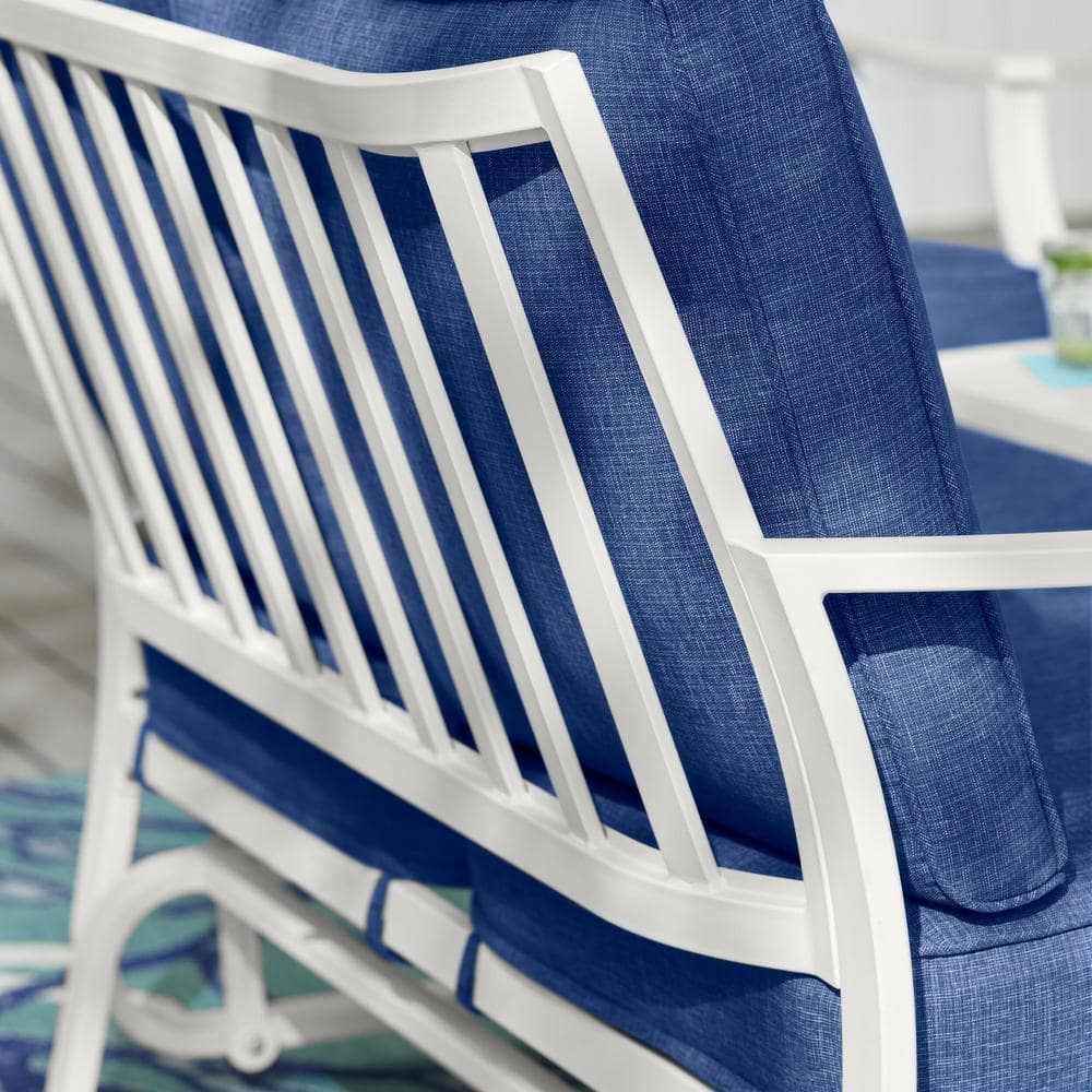 Hampton Bay Harbor Point White 4-Piece Metal Patio Conversation Set with CushionGuard Mariner Blue Cushions