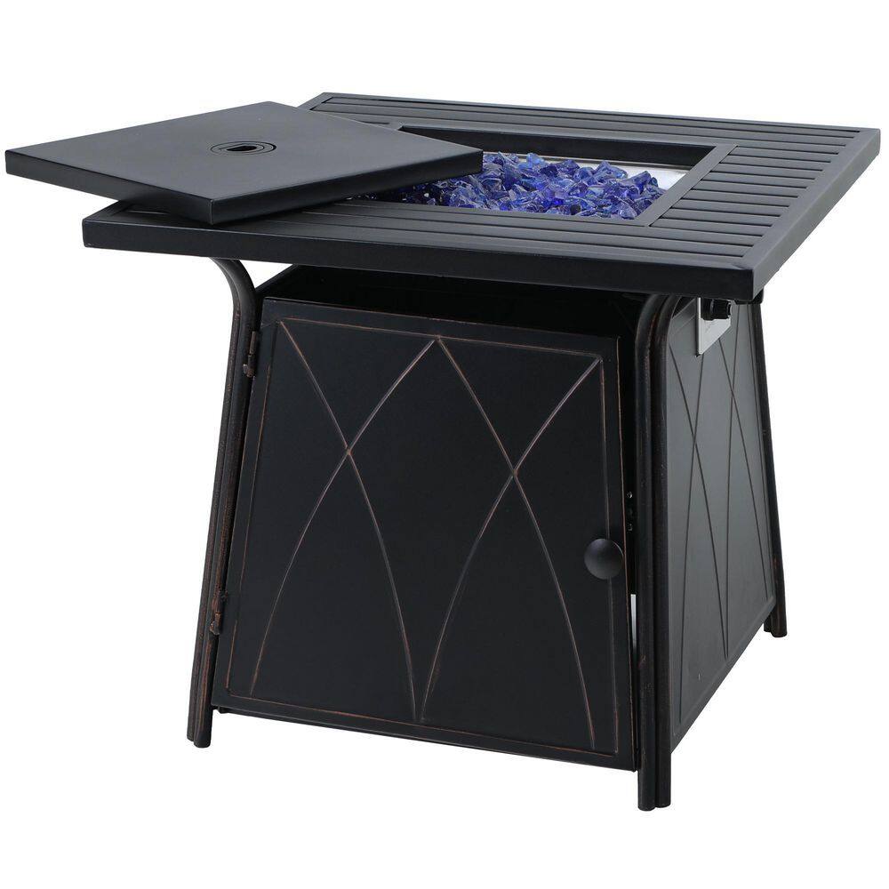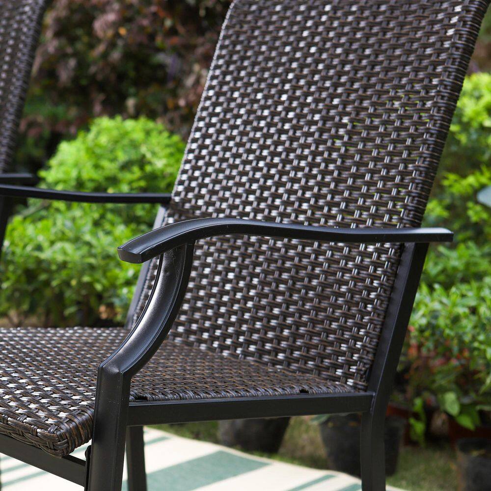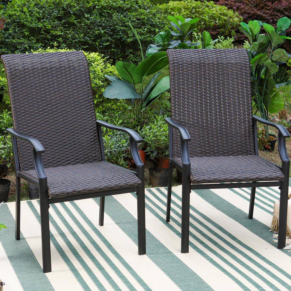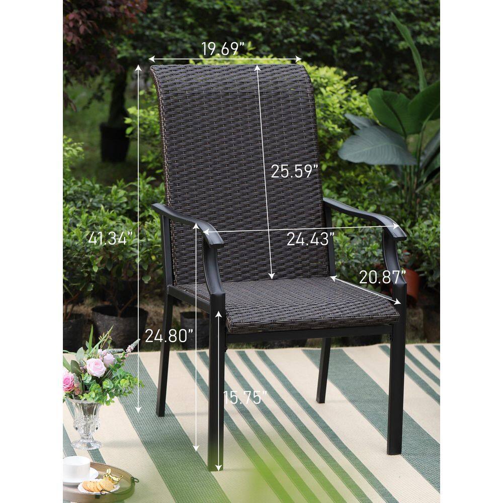 PHI VILLA 5-Piece Rattan Patio Fire Pit Set. 4 Chairs with Wave Armrest High in Back