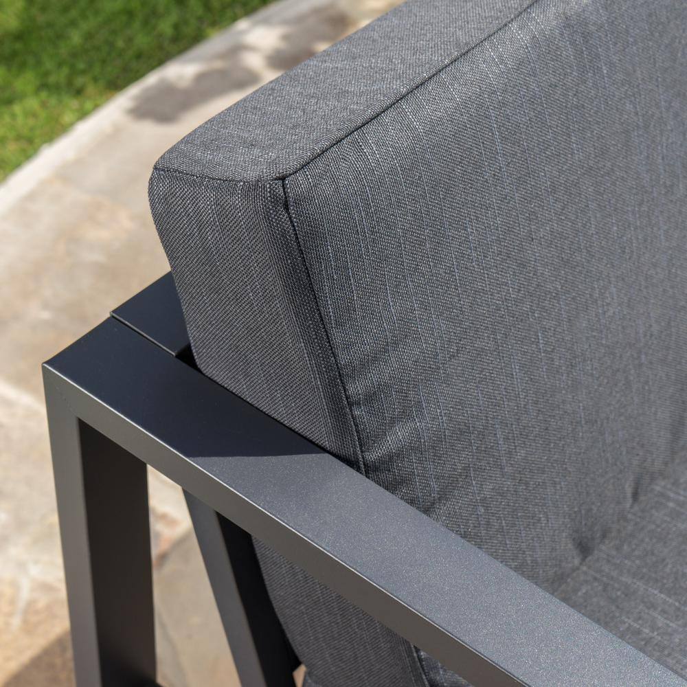 Noble House Navan Dark Grey 5-Piece Aluminum Outdoor Sectional Set with Black Cushions