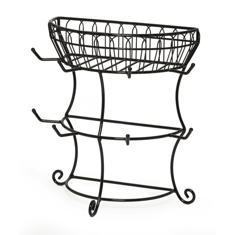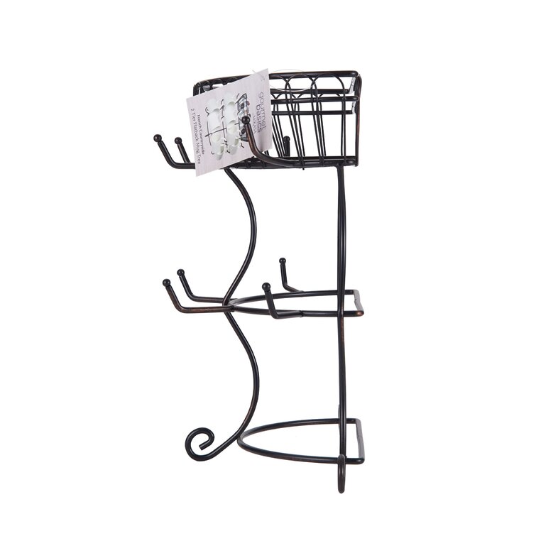 Gourmet Basics by Mikasa French Countryside Metal Mug Tree with Storage Basket. Antique Black. 14.75-Inch
