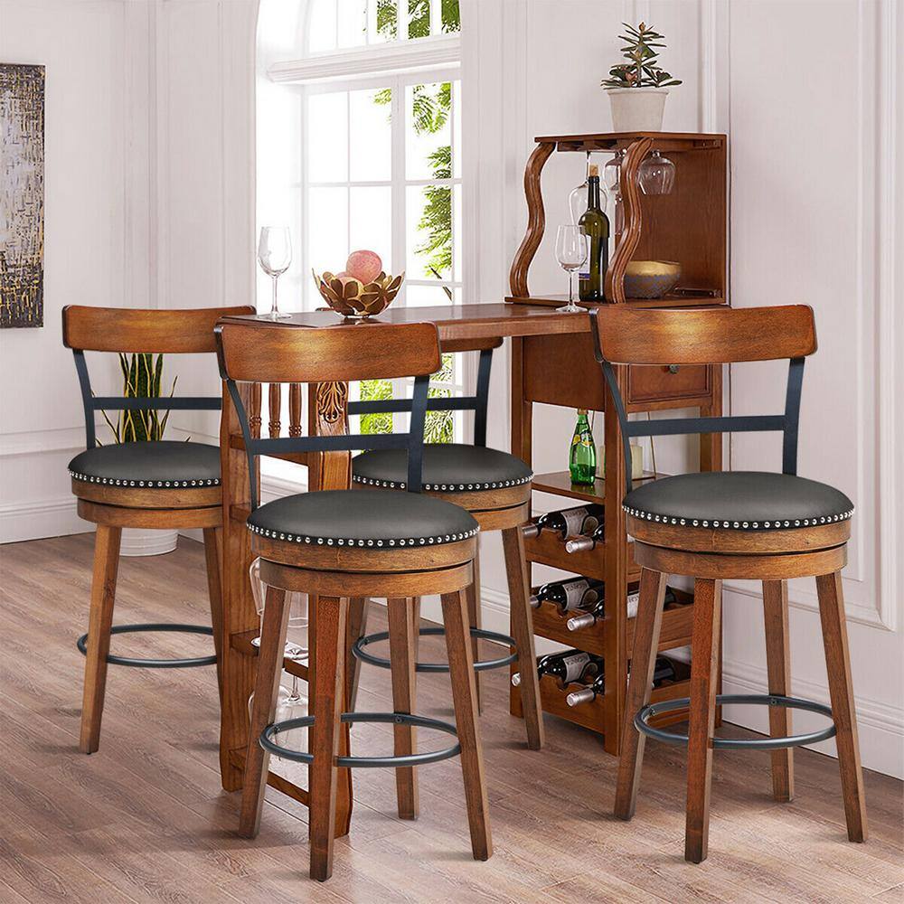 Gymax 39 in. H BarStool 25.5 in. Low Back Swivel Counter Height Dining Chair with Rubber Wood Legs Brown (Set of 4)