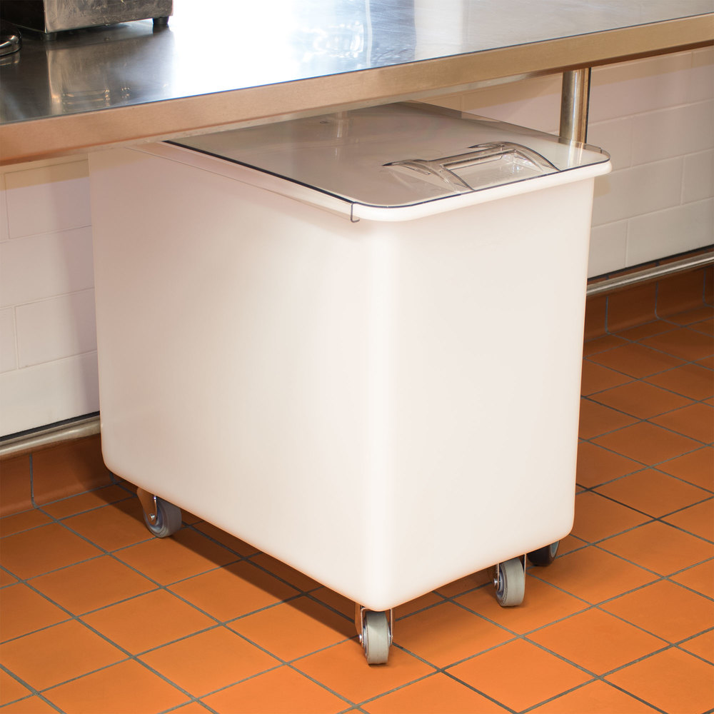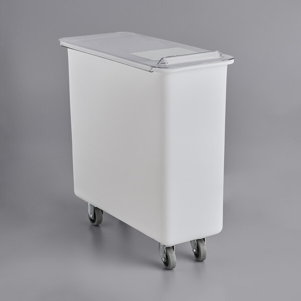 Carlisle BIN2702 27 Gallon / 430 Cup White Flat Top Mobile Ingredient Storage Bin with Sliding Lid
