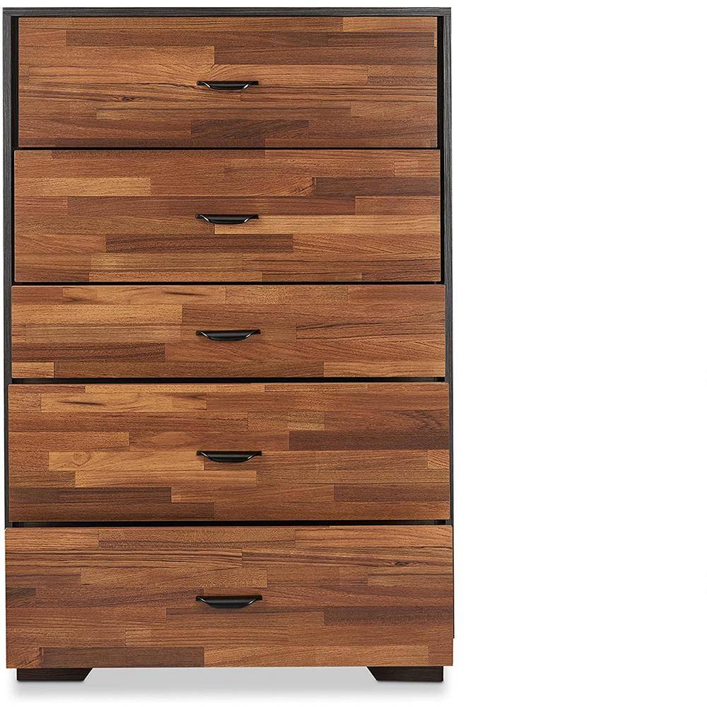 GOSALMON 5 Drawer Walnut and Espresso Chest of Drawers 47 in. H x 32 in. W x 16 in. D