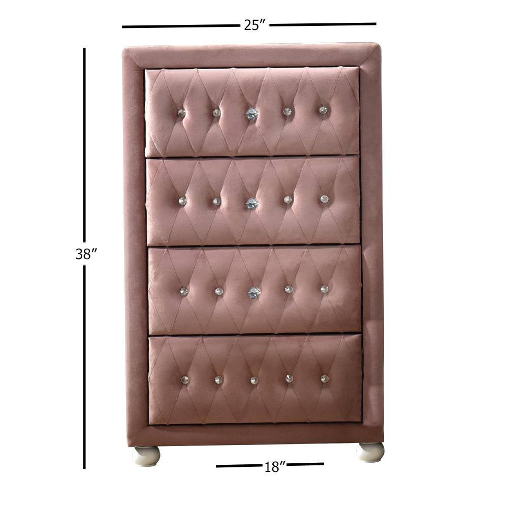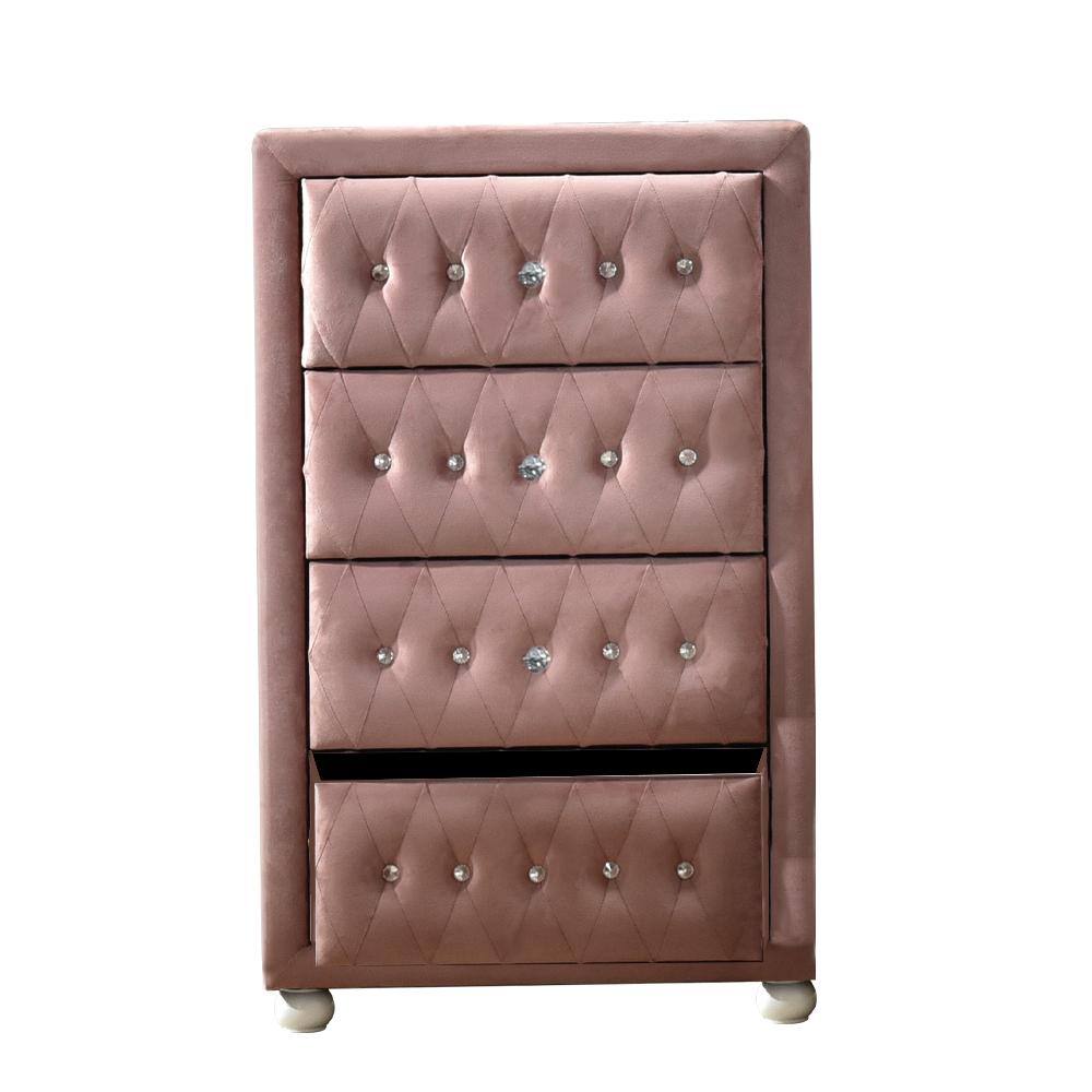 Acme Furniture Reggie 4-Drawer Pink Fabric Chest of Drawer 38 in. x 18 in. x 25 in.