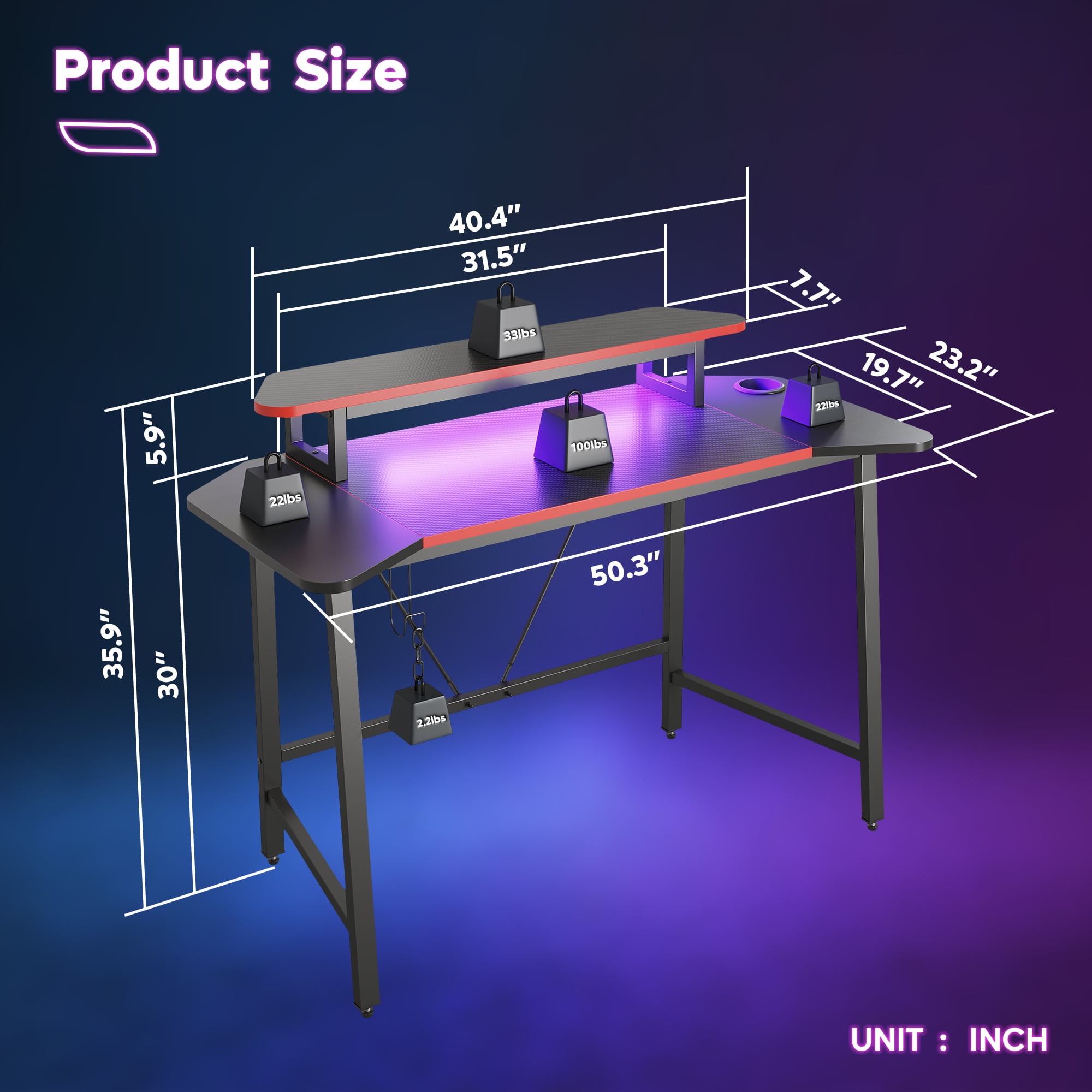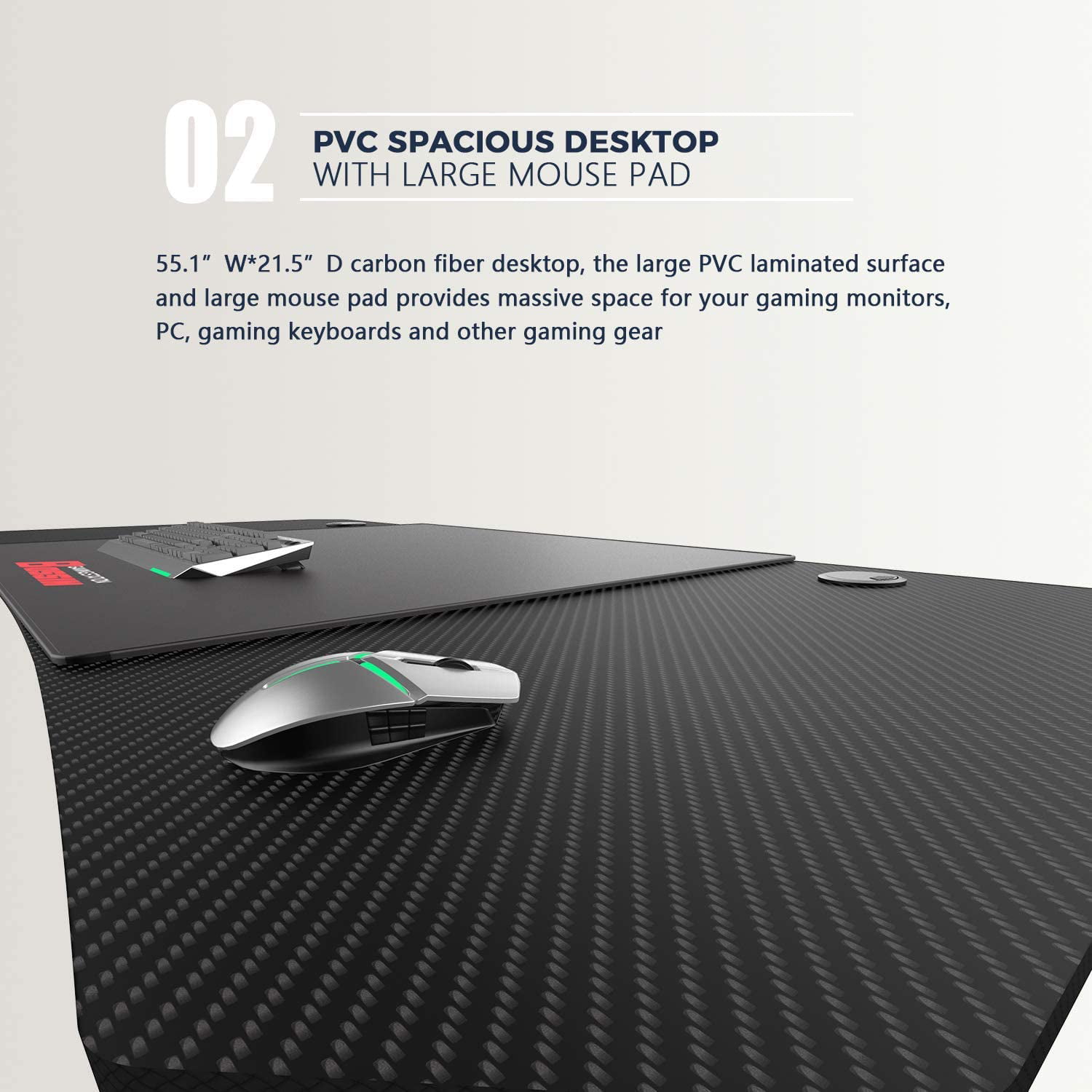 Vitesse 55 Inch Gaming Desk. Ergonomic Office PC Computer Desk with Large Mouse Pad