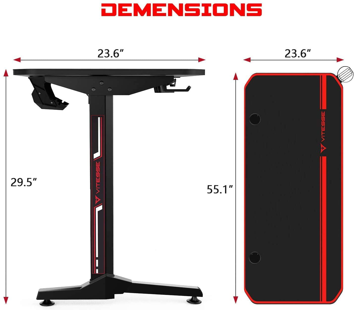 Vitesse Gaming Desk Computer Desk with Large Desk Mouse Pad. PC Gamer Table with Cup Holder & Headphone Hook