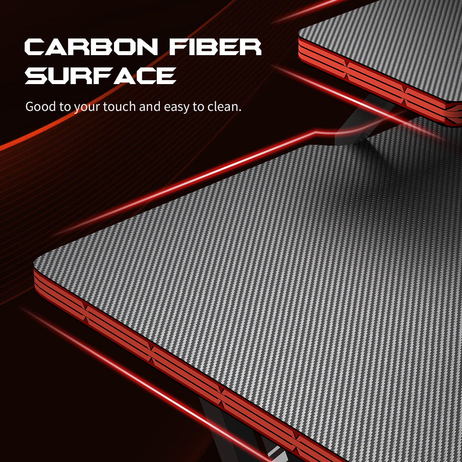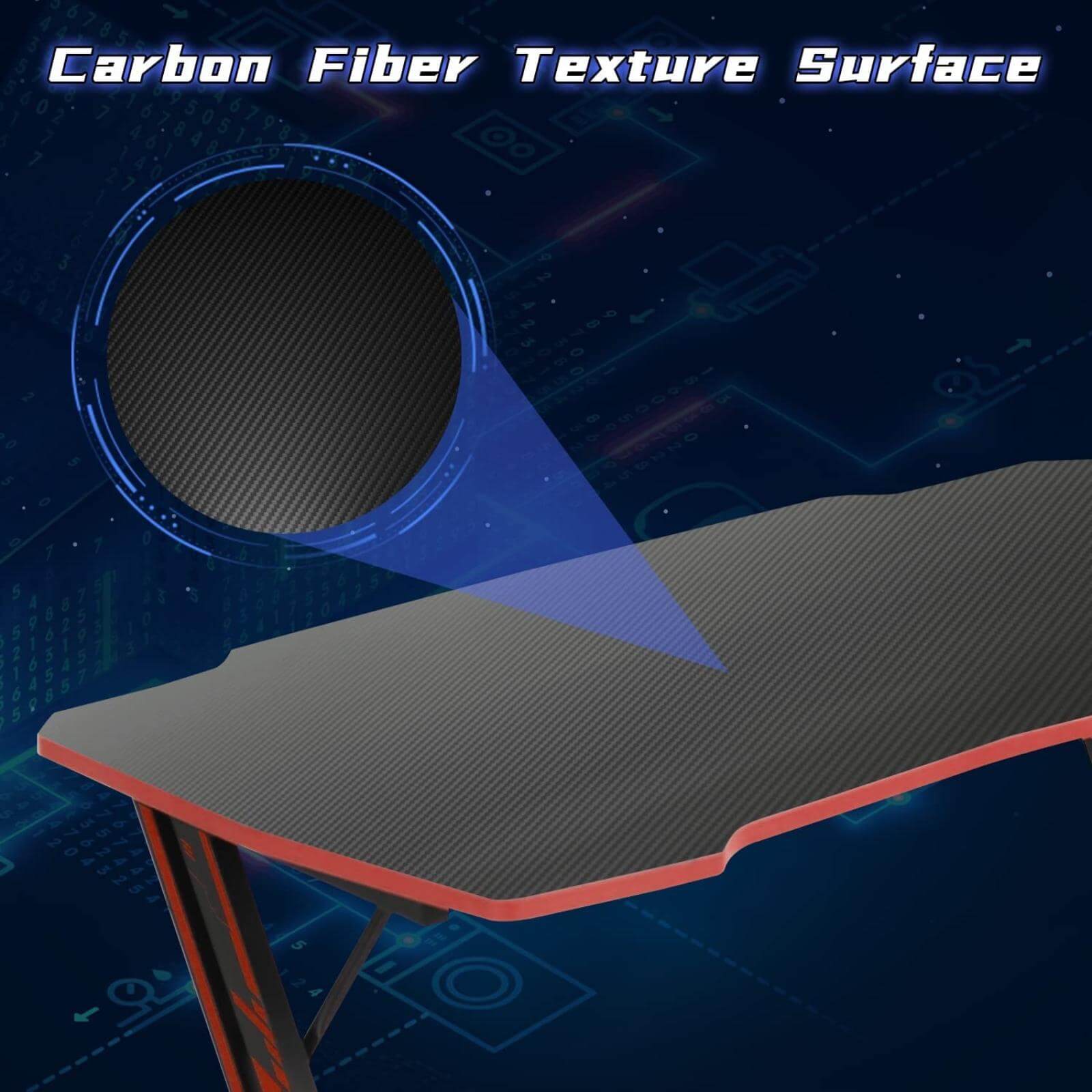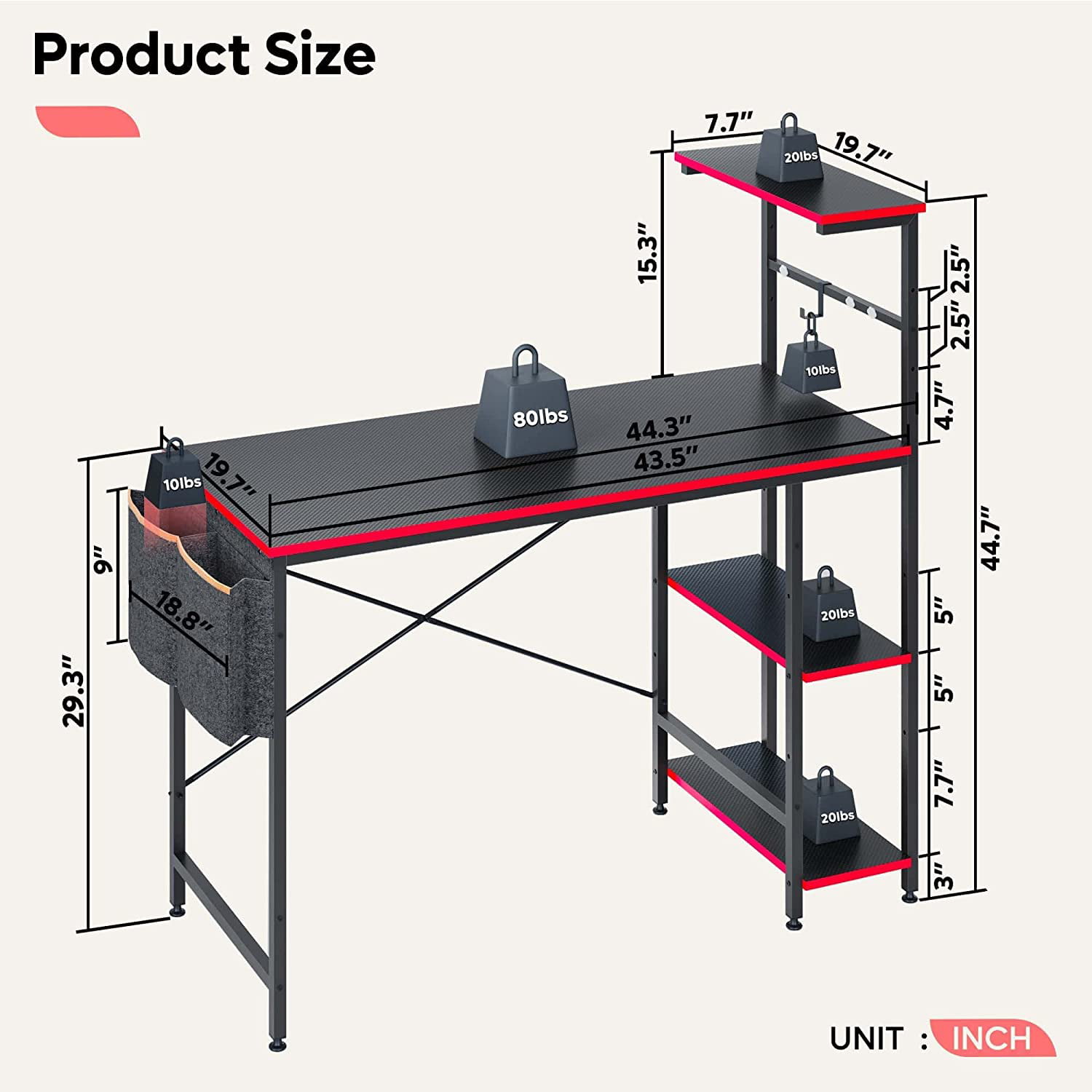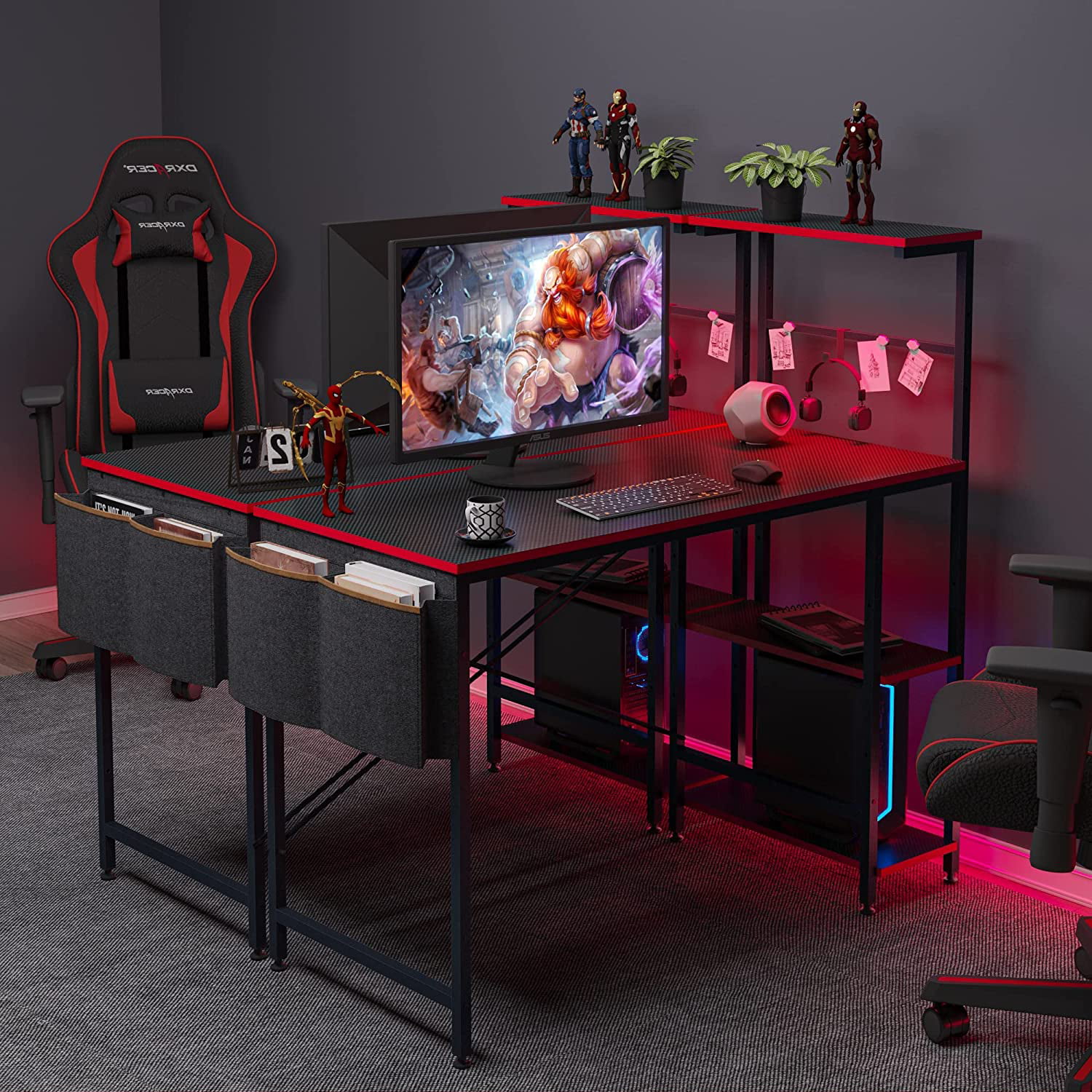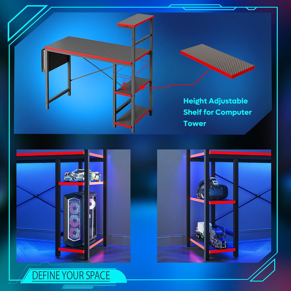 Bestier Reversible 44 inch Computer Desk with LED Lights Gaming Desk . 4 Tier Shelves Carbon Fiber
