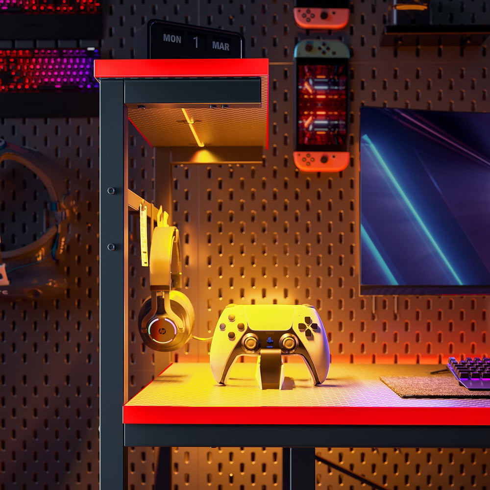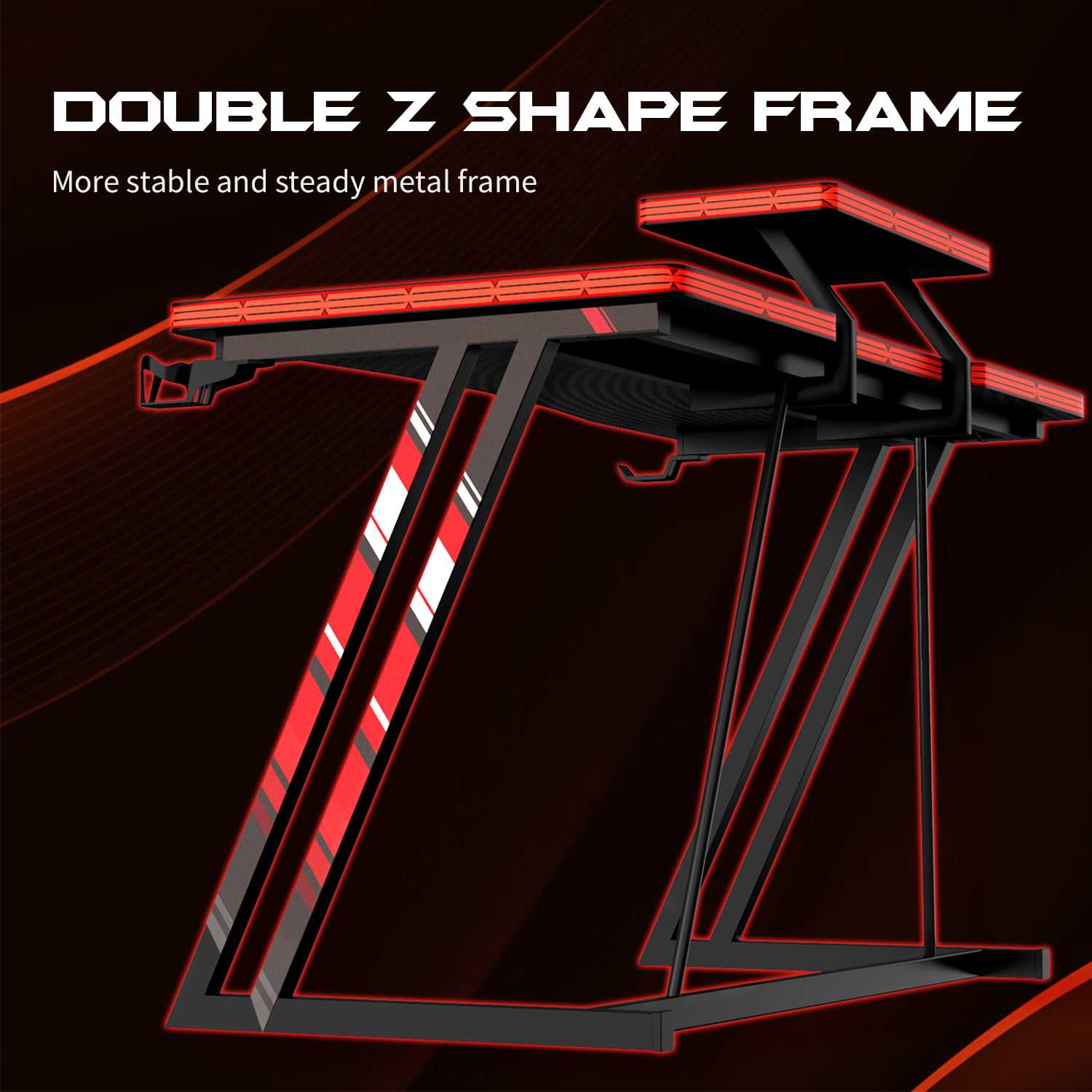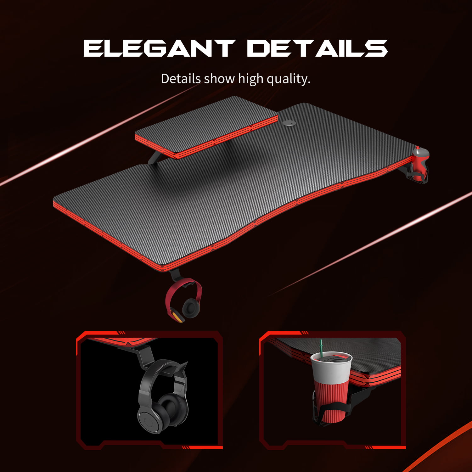 Gaming Desk All-In-One Professional Gamer Desk Cup Headphone Holder Power Strip