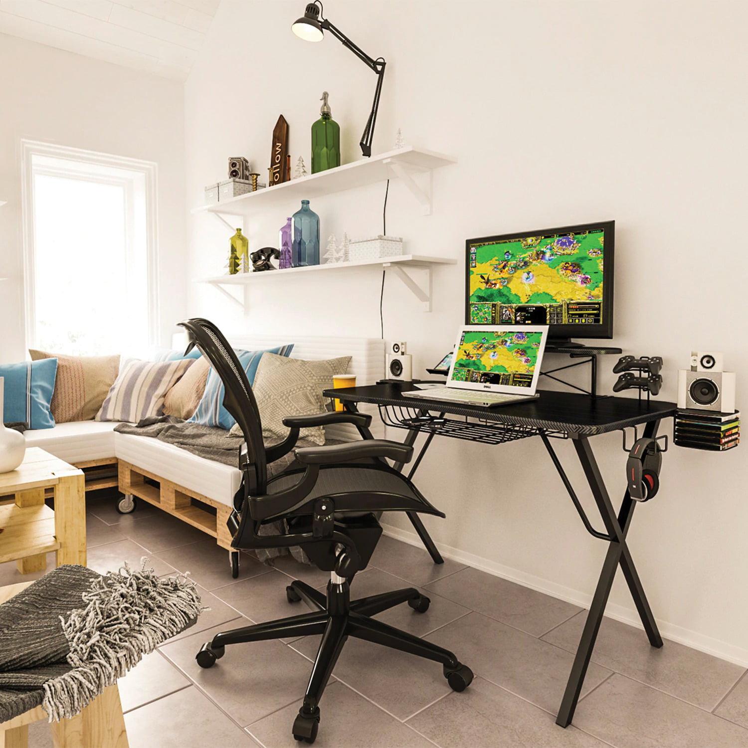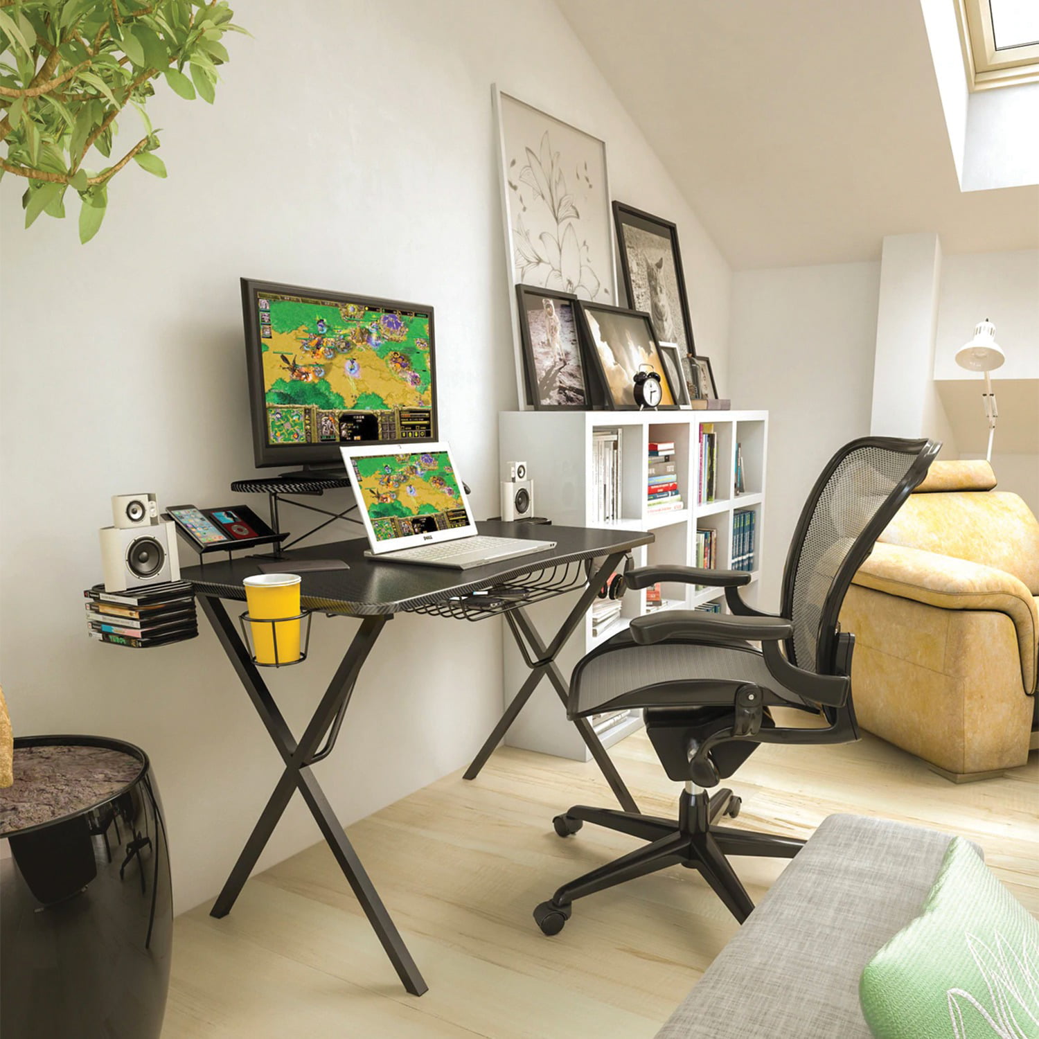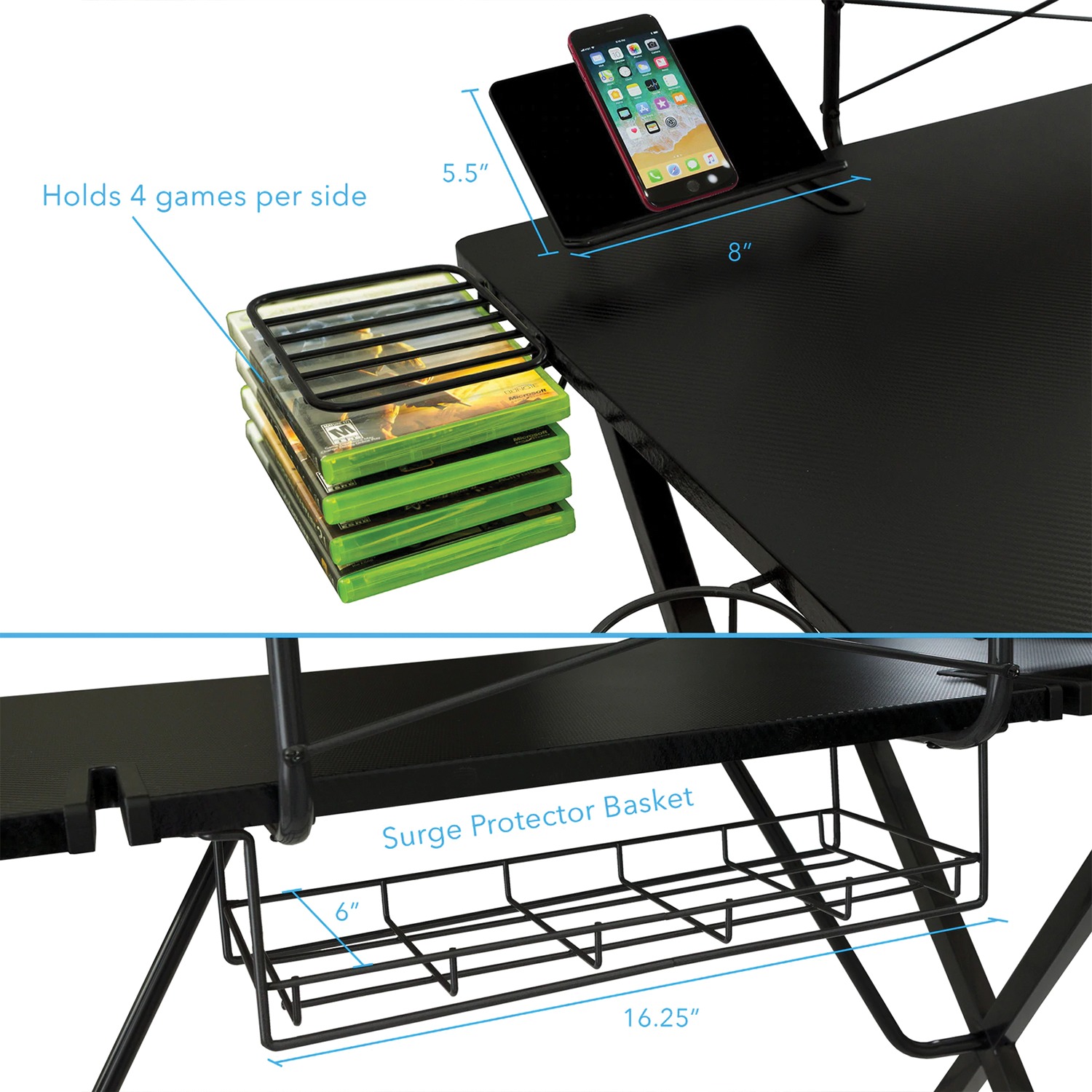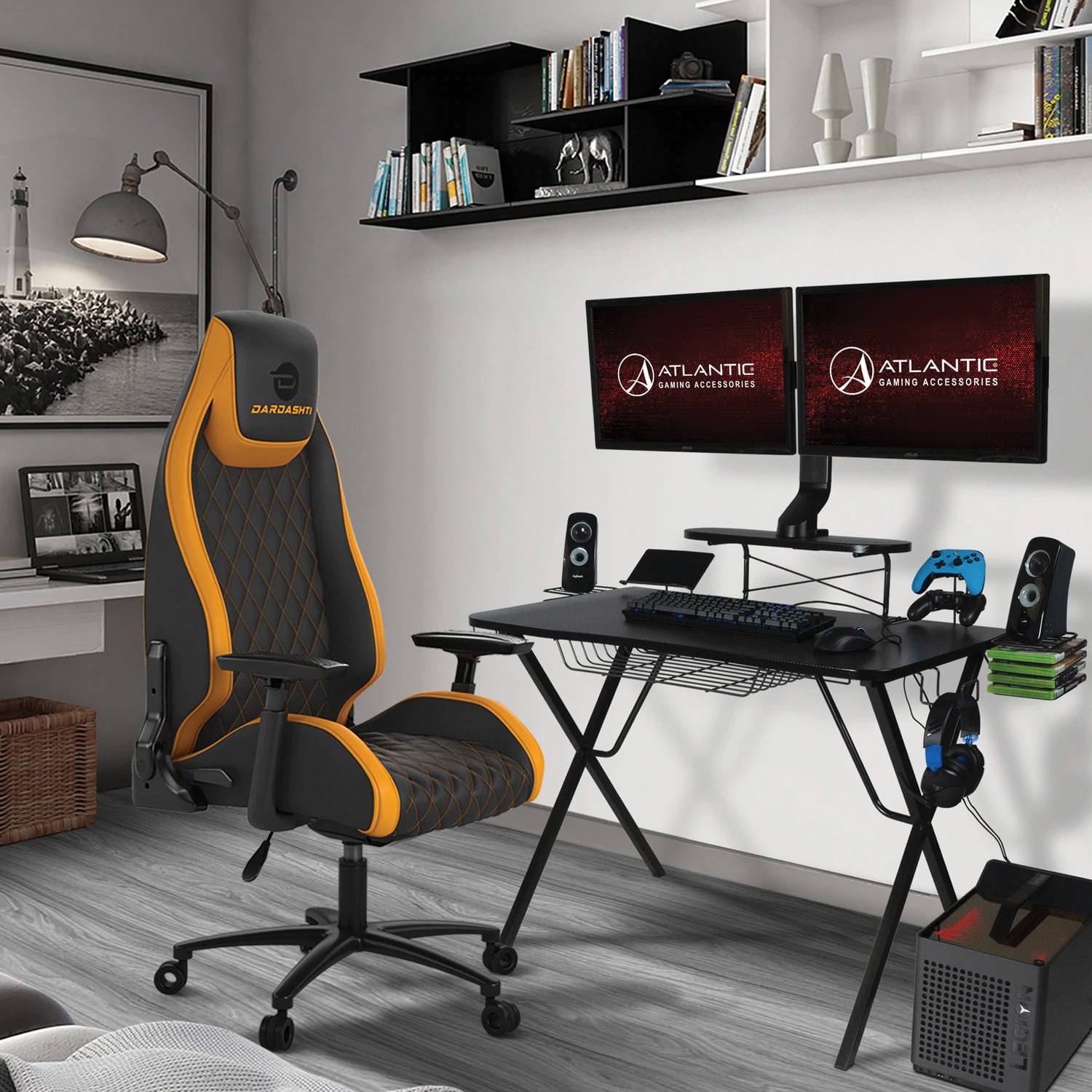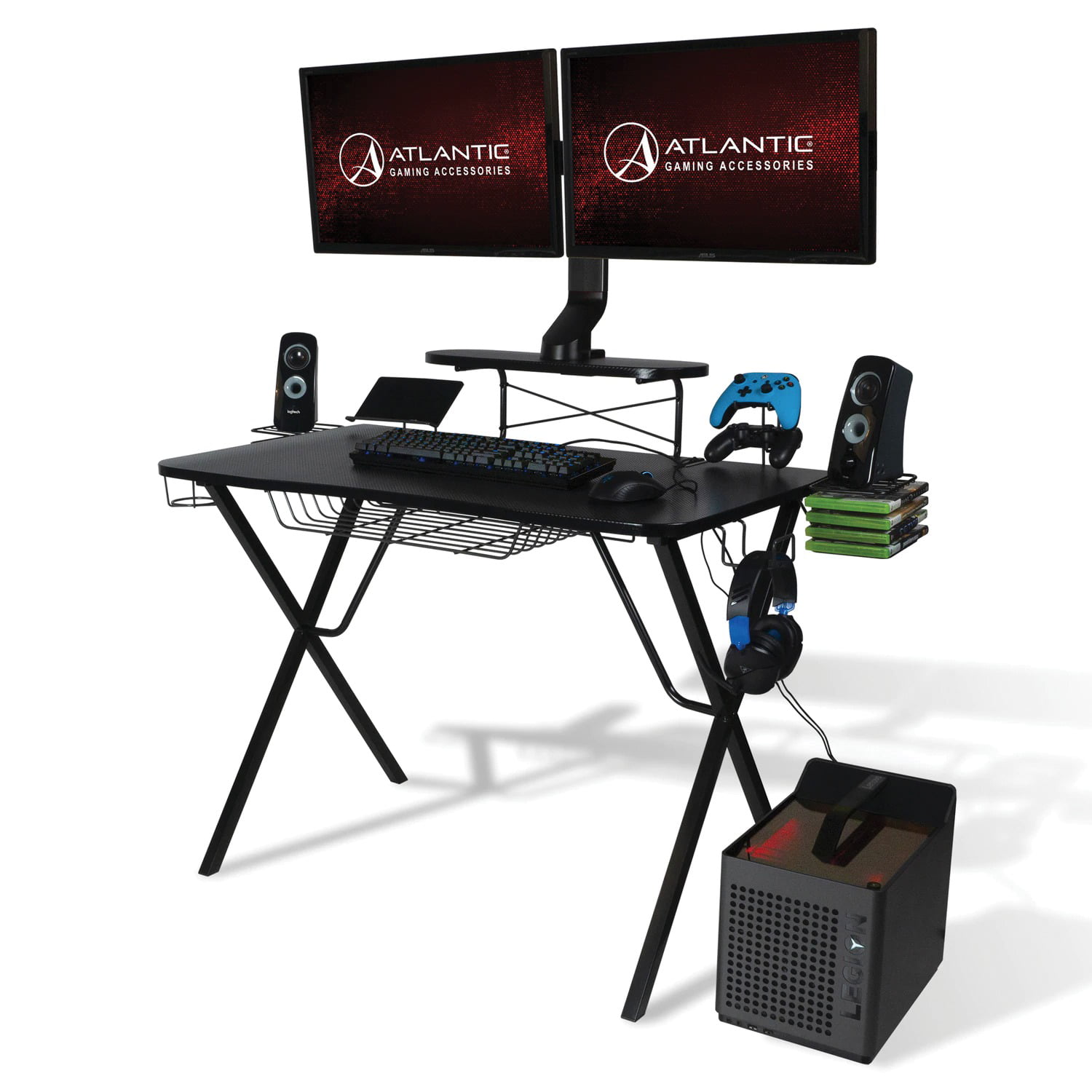 Atlantic Professional Gaming Desk Pro (Black or White). with Built-in Storage. Metal Accessory Holders and Cable Slots