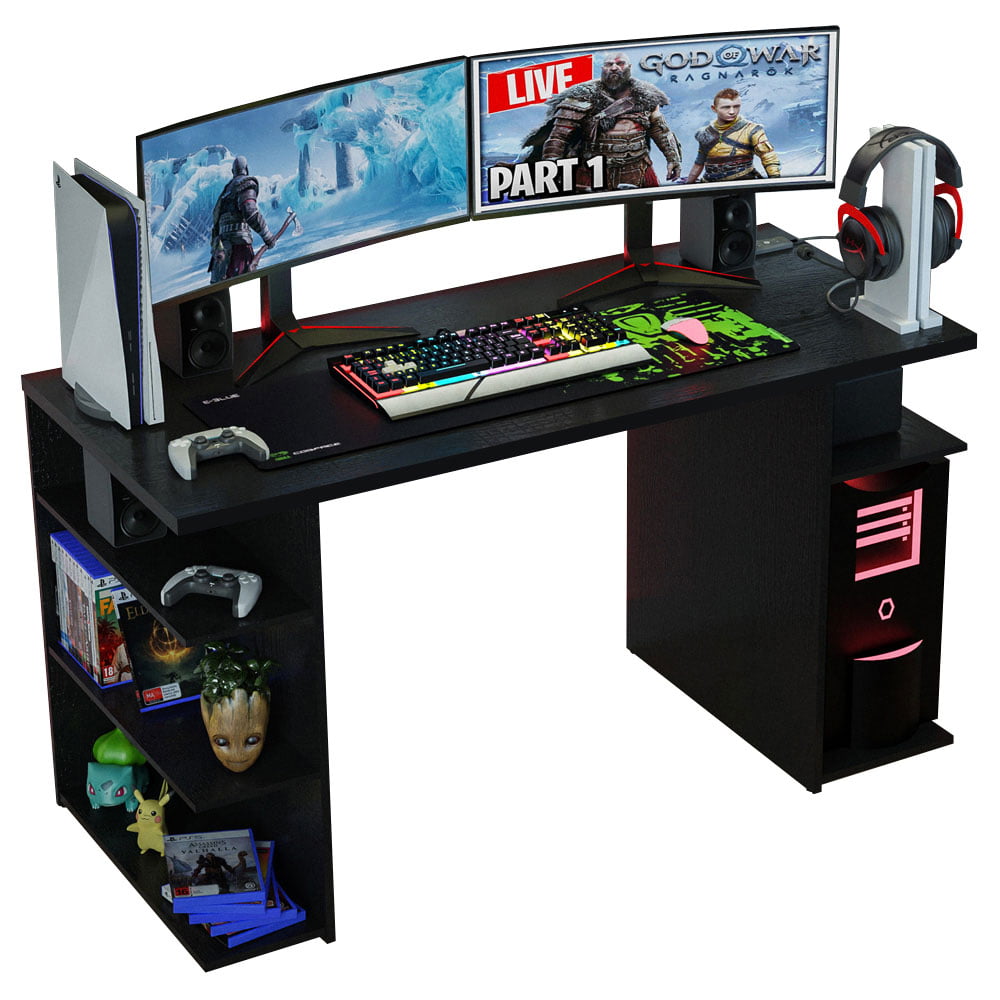 Madesa 53 inch Gaming Computer Desk with Shelves. Home Office Desk Writing Workstation. Wood - Black