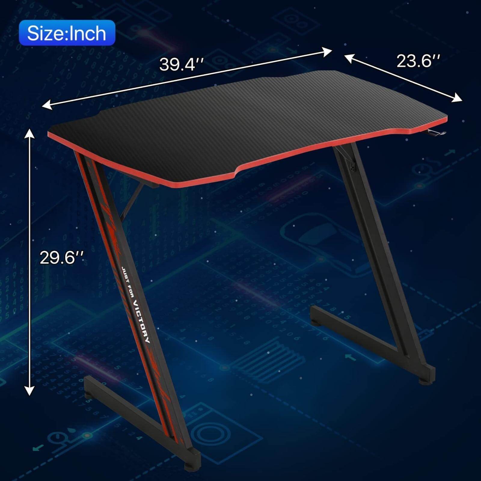 NiamVelo Gaming Desk 39.4 inch Z-Shaped Computer Desk PC Computer Table Home Office Desk Ergonomic Gamer Workstation with Headphone Hook. Red