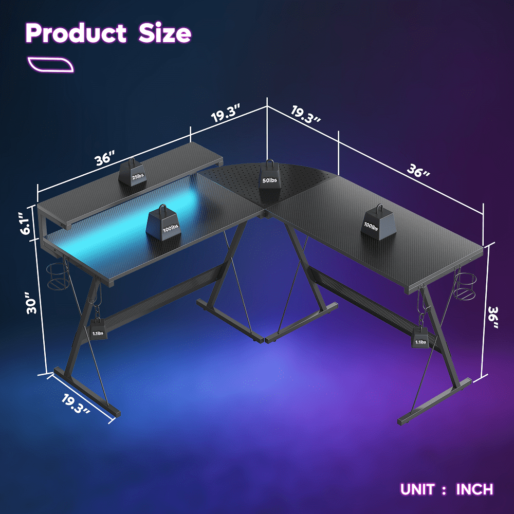Bestier 55 inch Gaming Desk L Shaped Carbon Fiber Surface Corner Desk