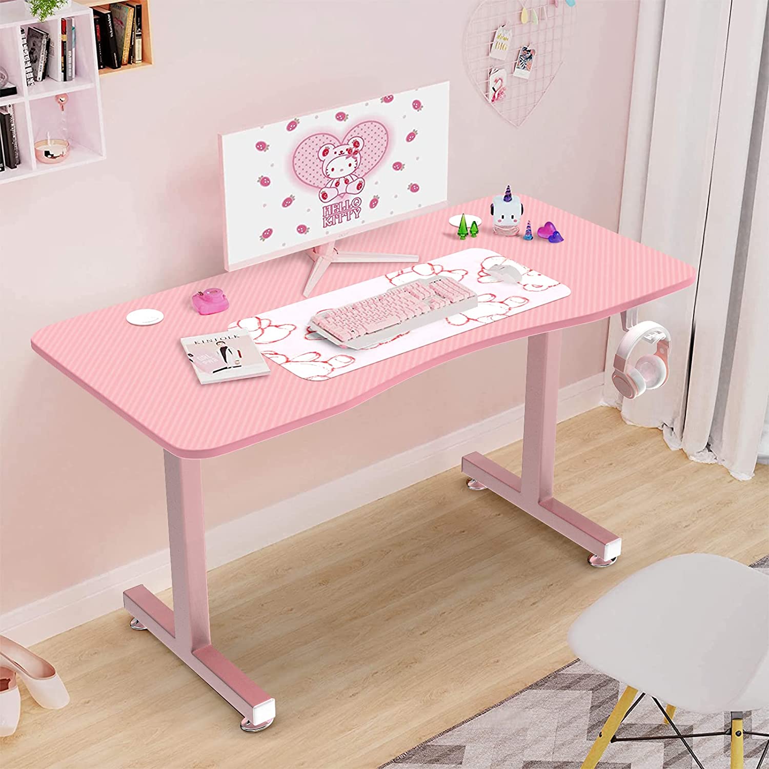 Vitesse Pink Gaming Desk 40 Inch Computer Desk Cute Gaming Table T-Shaped Girl Gamer (Pink)