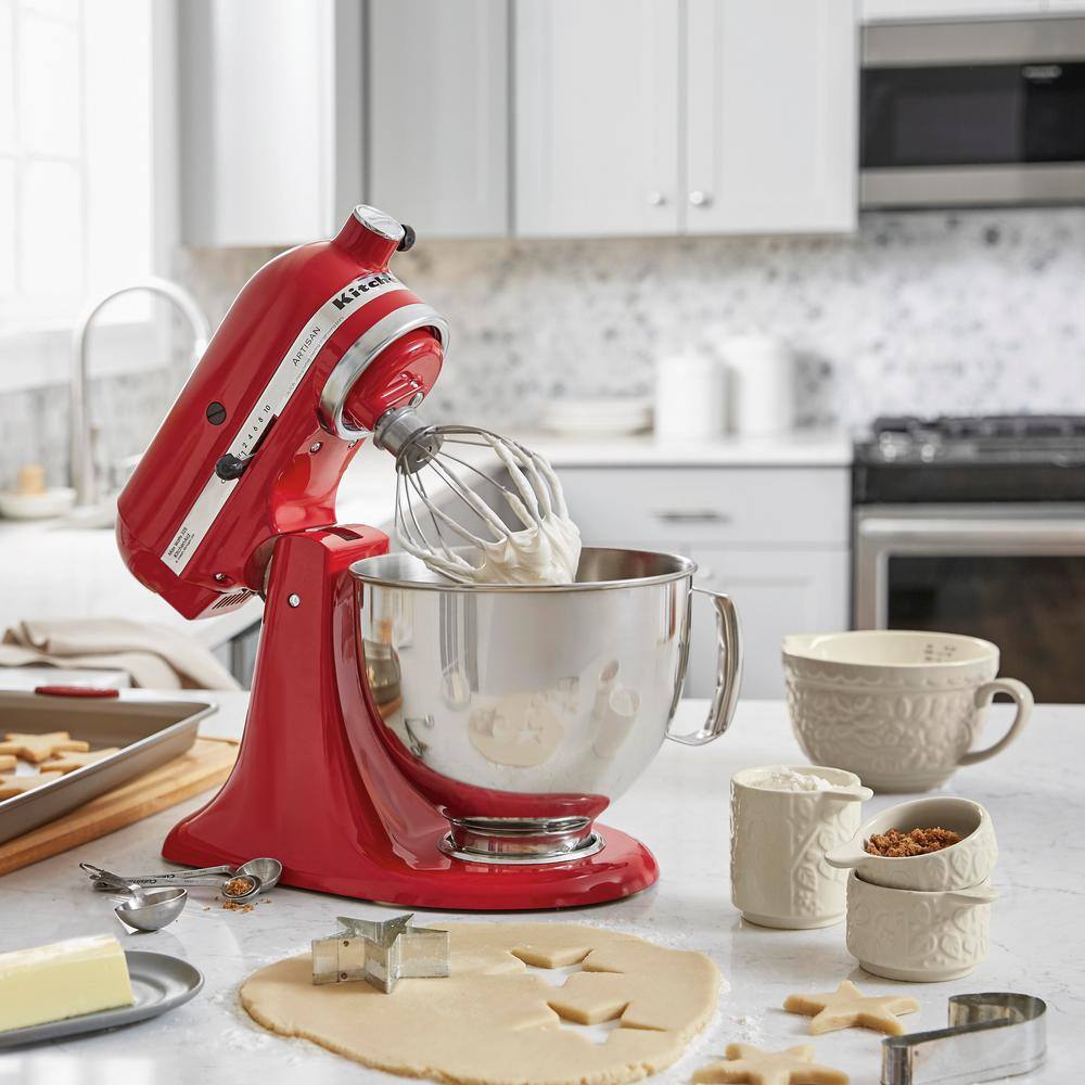 KitchenAid Artisan 5 Qt. 10-Speed Empire Red Stand Mixer with Flat Beater. 6-Wire Whip and Dough Hook Attachments