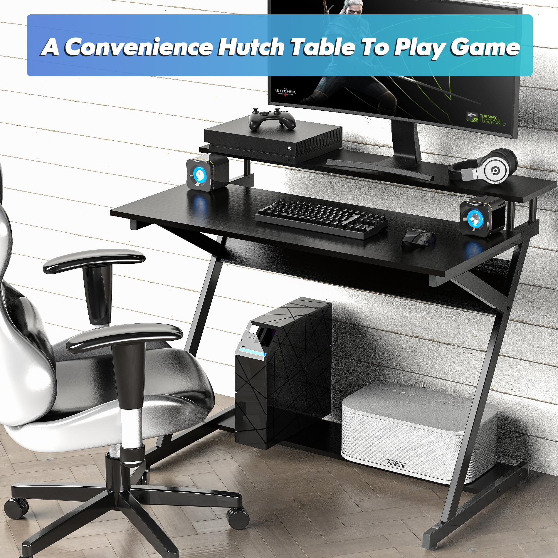 G-Plus Computer Desk Wood Office Table. Modern PC Laptop Notebook Study Writing Table for Home Office Workstation (43.3”. Black Color)