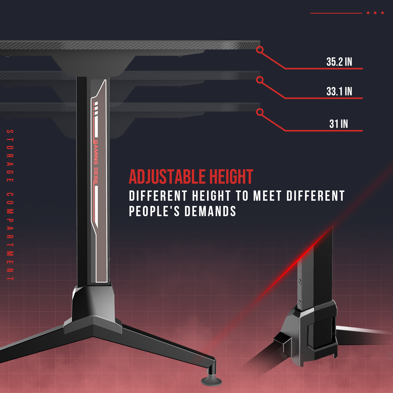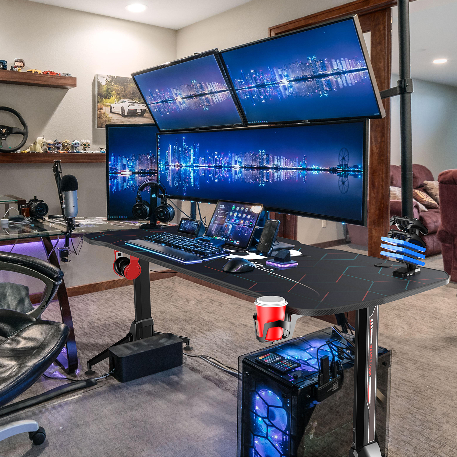 Lacoo Gaming Desk Steel Frame Y-shaped Gaming Desk with Adjustable Height. Black 63″ x28.9″ x 31.9″