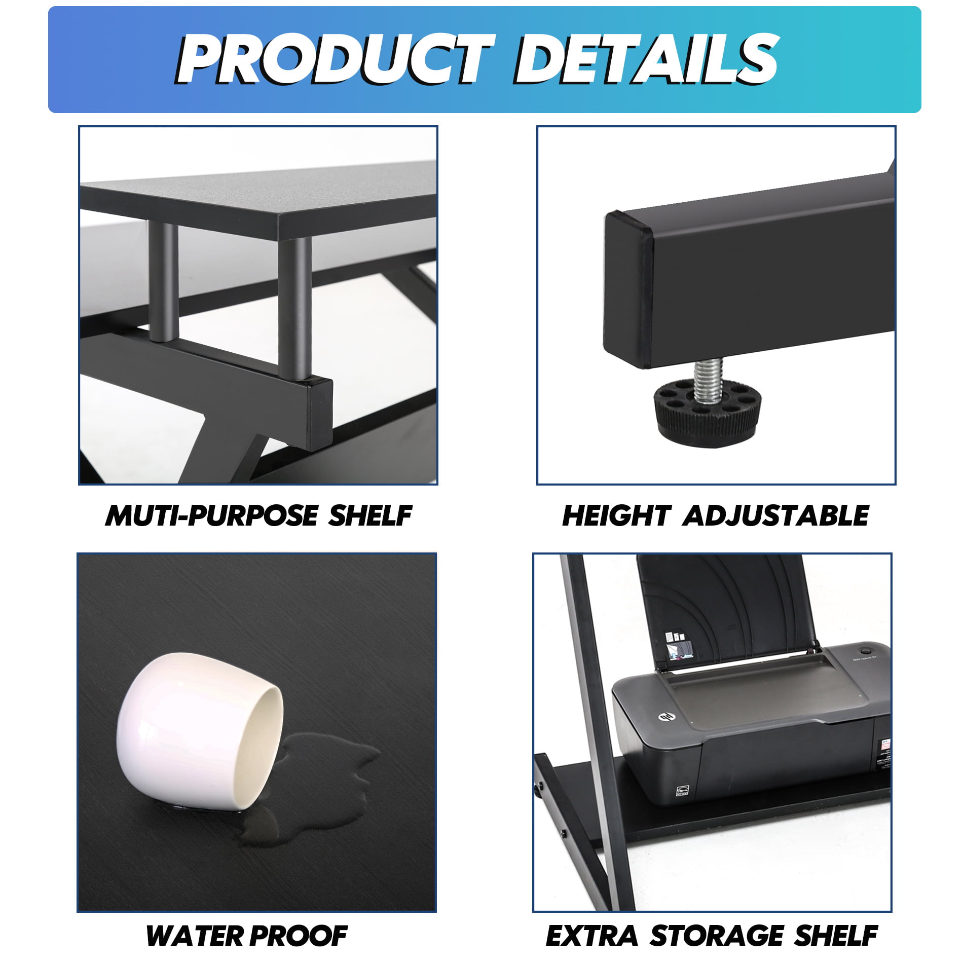 MoNiBloom Writing Office Table 32″. Simple Home Gaming Study Computer Desk with Storage Bag. Black