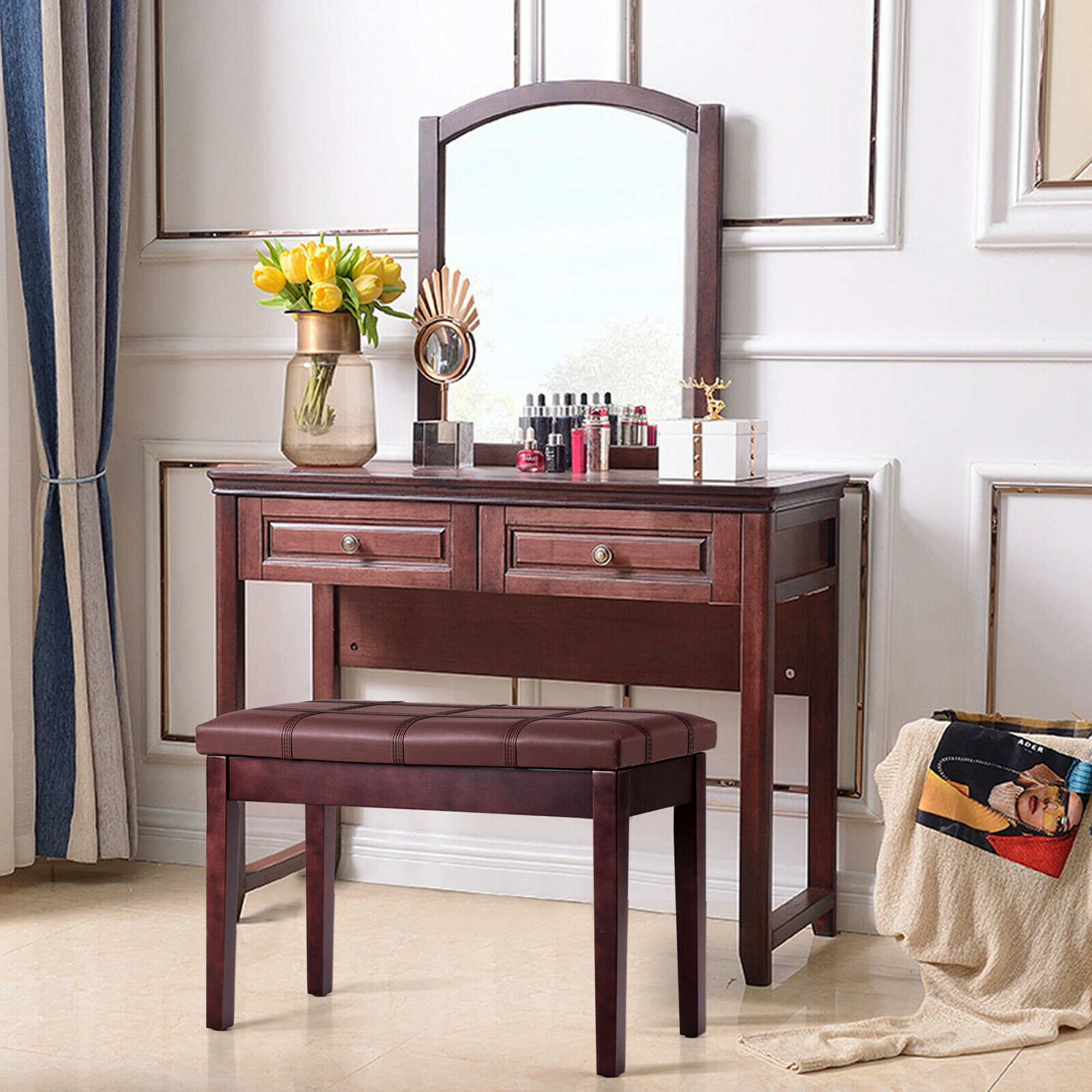 Gymax PU Leather Piano Keyboard Bench Padded Cushion Double Seat Storage